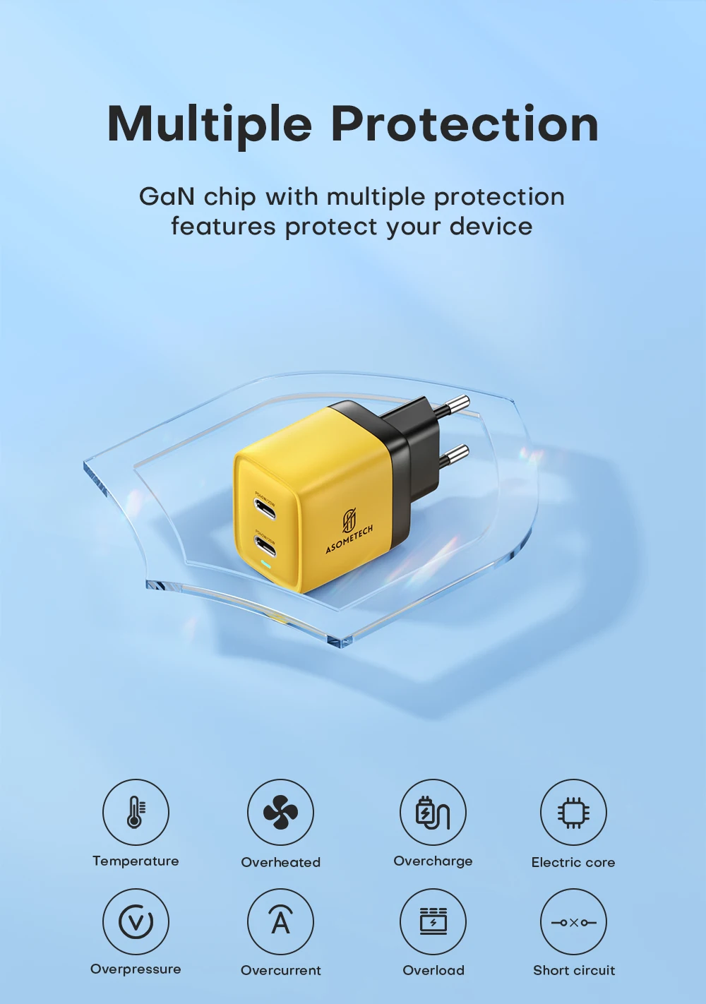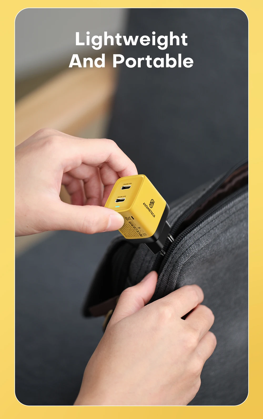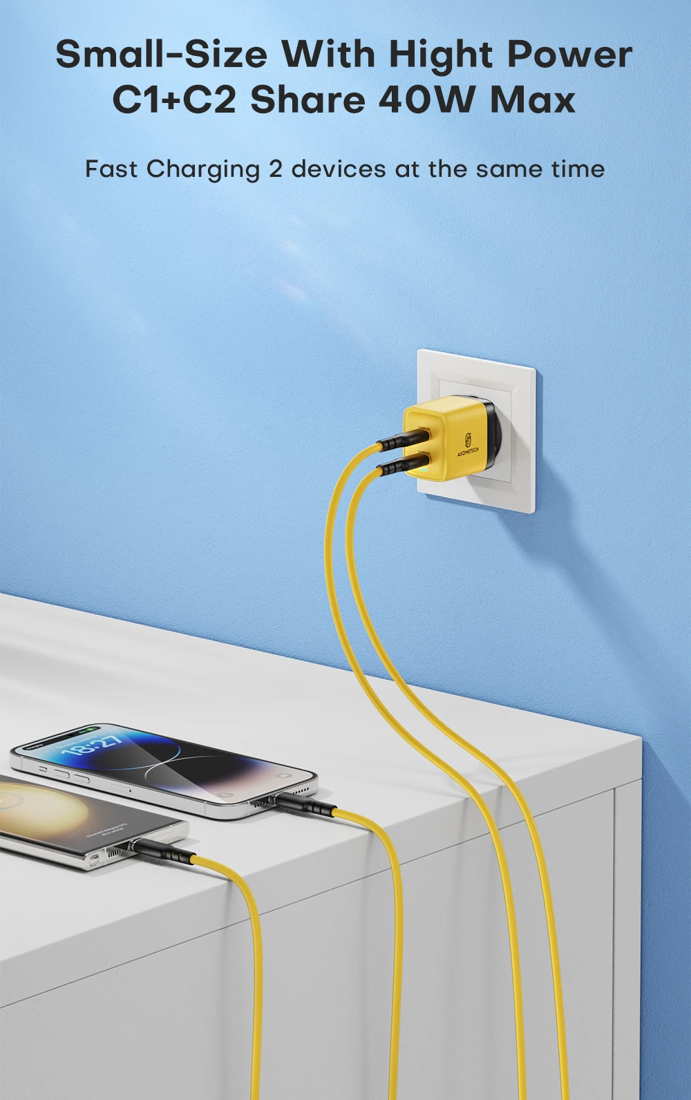 Comprar ASOMETECH-cargador GaN de 40W, USB Dual tipo C, Cargador rápido QC4.0 PPS PD, cargador de teléfono portátil para iPhone 16, Samsung S23, iPad y tableta