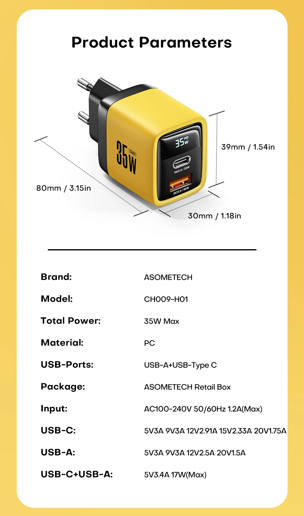 💪【Compatibilidad universal】 El cargador tipo C de 35W de ASOMETECH con PD3.0 QC4.0 QC3.0 PPS AFC FCP SCP SSCP El protocolo de carga rápida es compatible con iPhone 14/Plus/Pro Max, MacBook Air, iPad Pro/Air/Mini, iPhone 13/13 Pro/13 Pro Max/13 Mini/12/12 Pro/12 Pro Max, y Samsung Galaxy y más dispositivos;