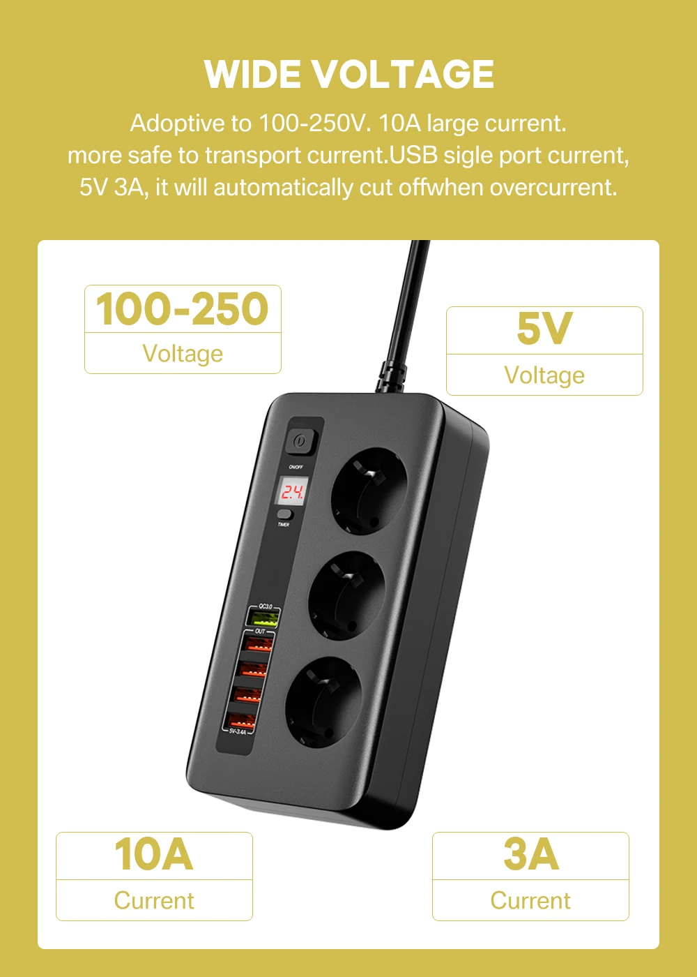 • Protección de sobrecarga:Protege sus dispositivos de sobrecalentamiento y sobrecarga, garantizando su seguridad.