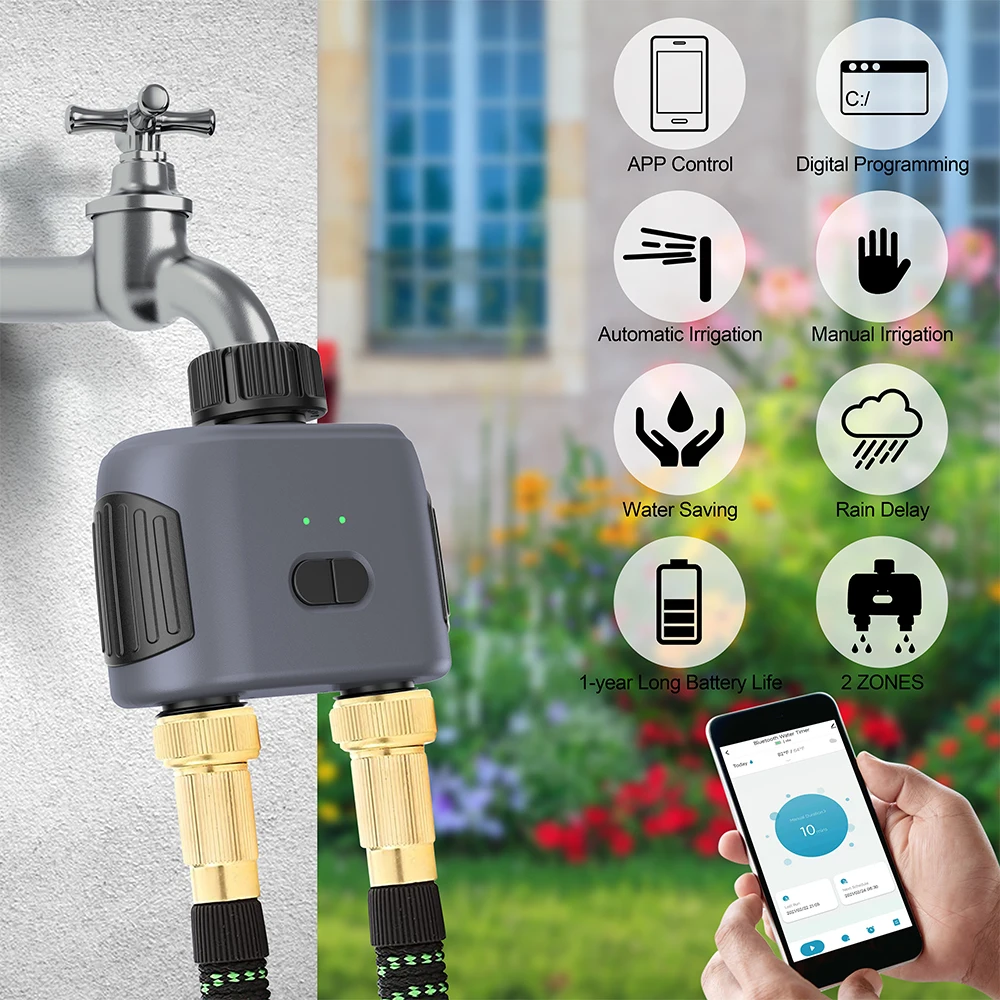 Comprar Aspersor de agua inteligente para jardín, temporizador de agua de 1/2 vías, filtro de retardo de lluvia, controlador de riego automático programable, 2025