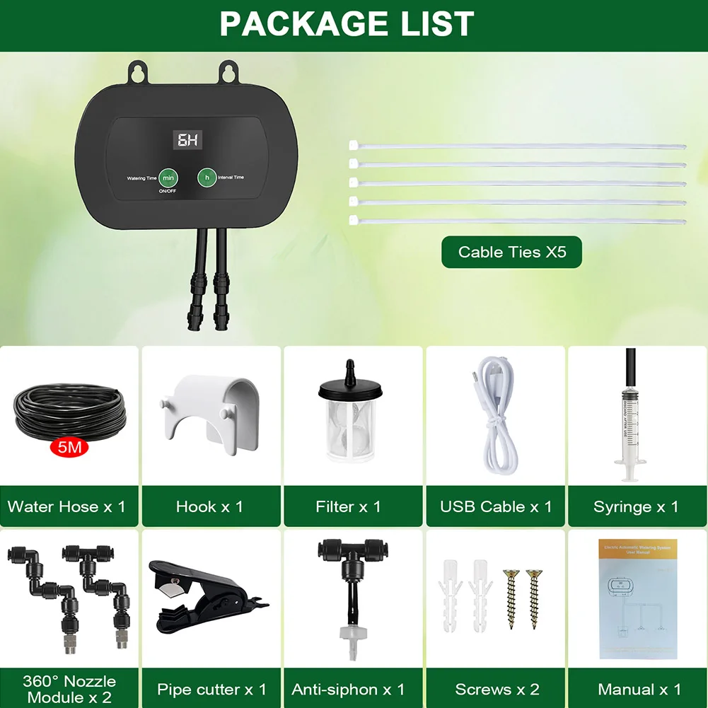1 cable USB 1xcontrolador 1x tubería de agua de 5m 1xantisifón Boquilla de compensación 2xatomizador 5 bridas para cables. 1xjaringa 1 filtro. 1x manual de instrucciones 1 tarjeta recordatoria 1 gancho en forma de U.