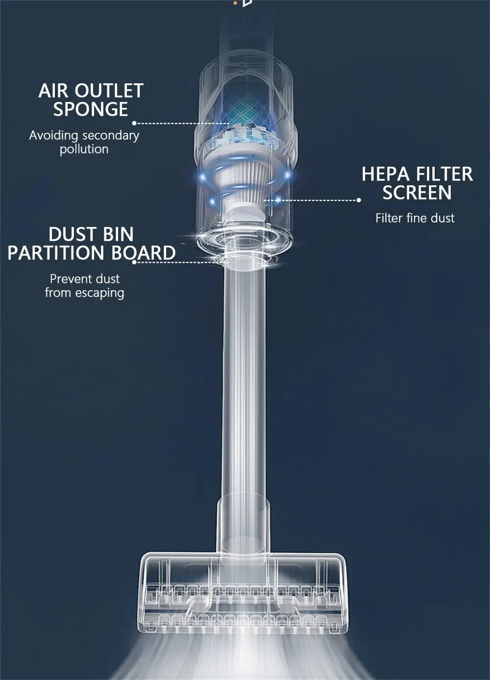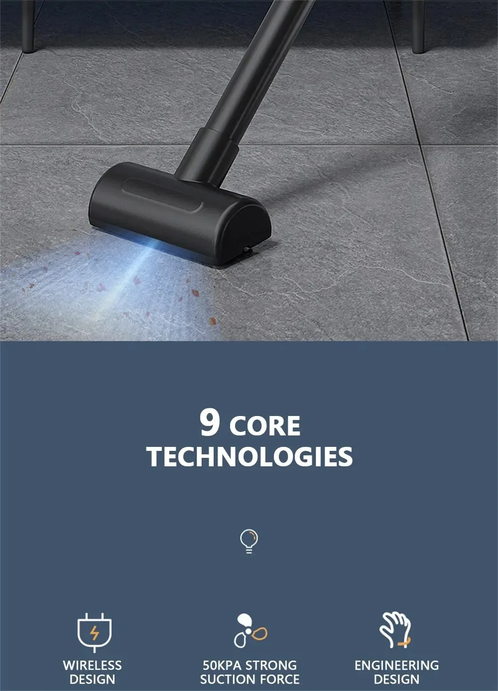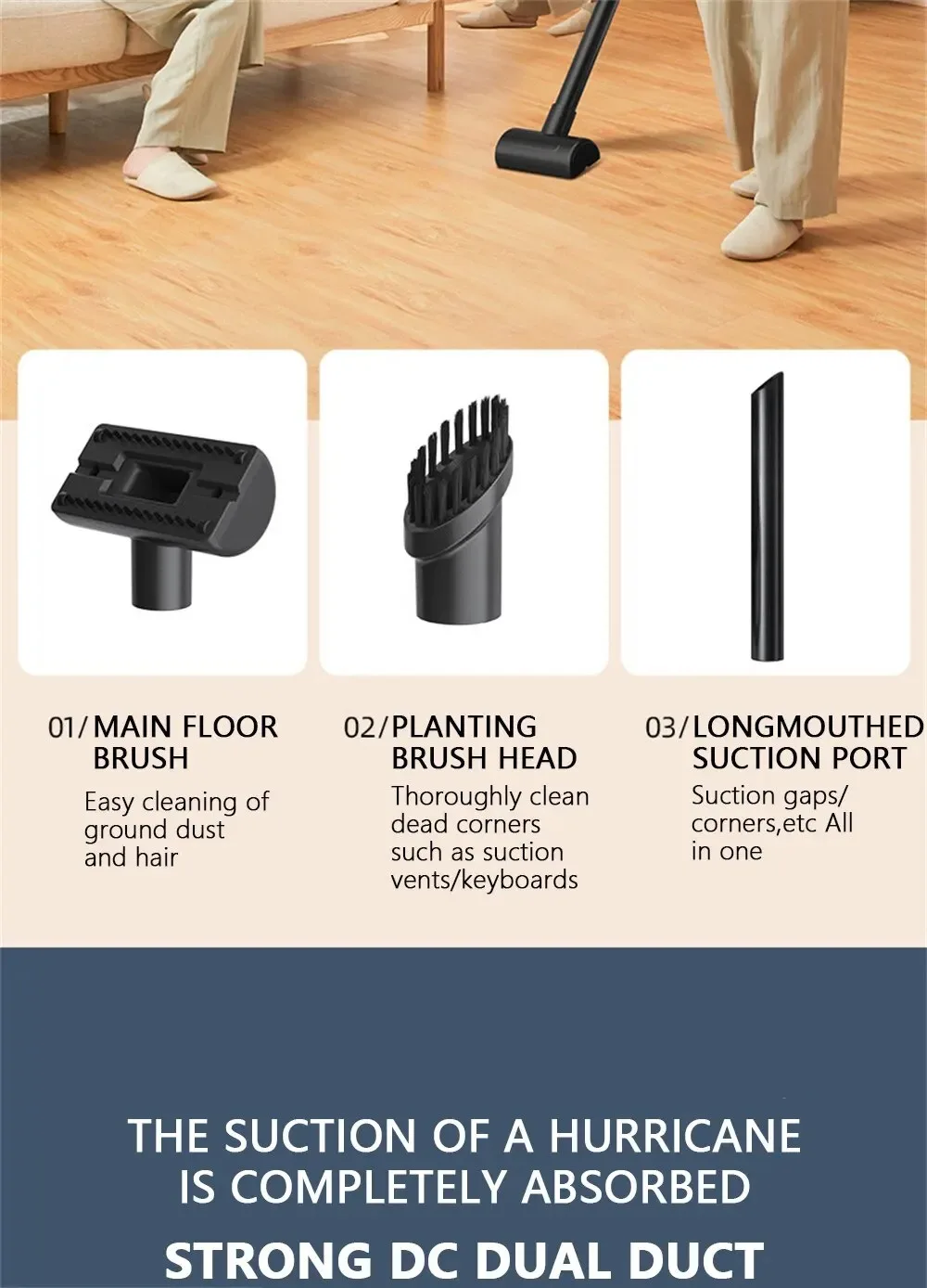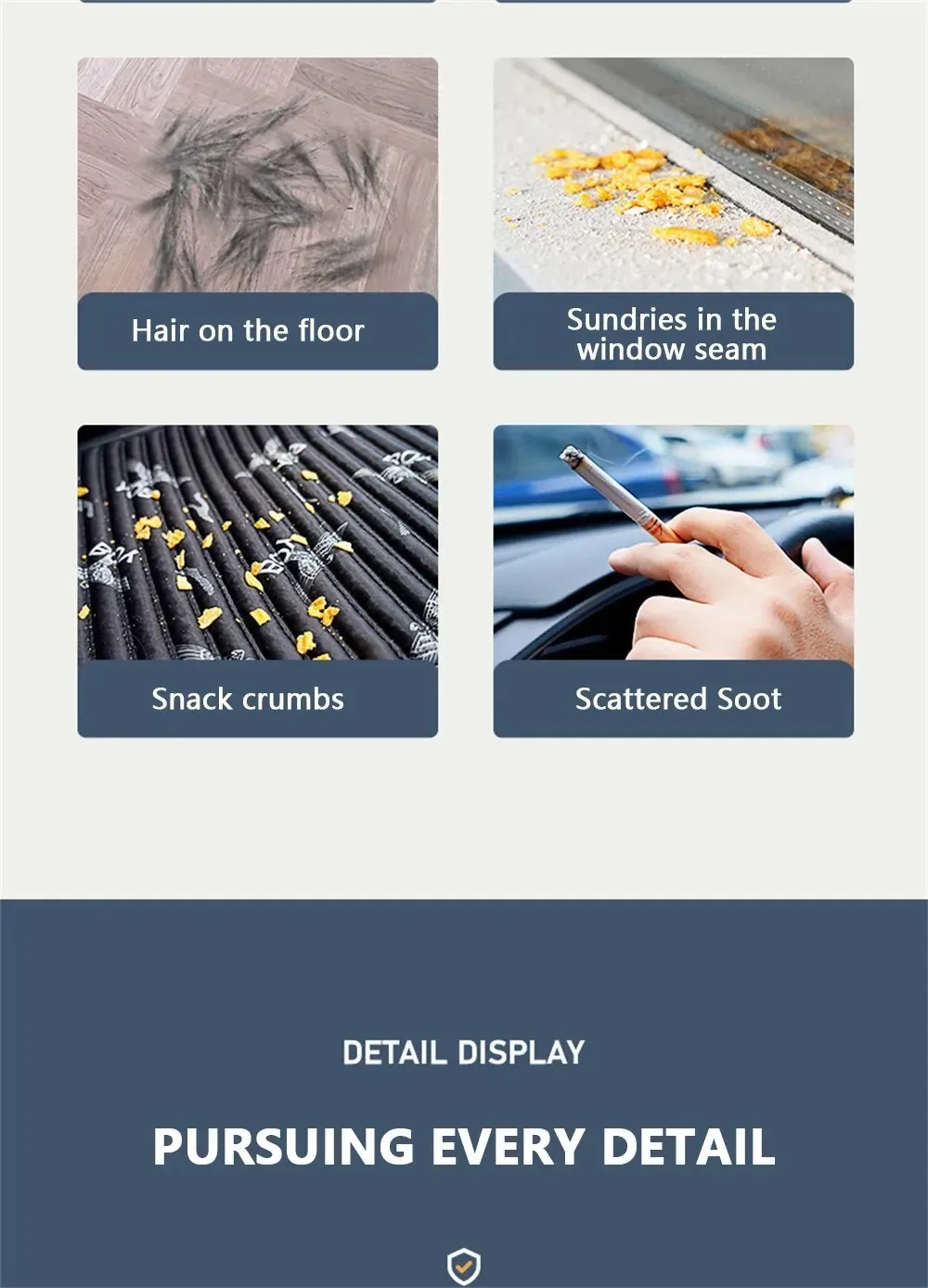 1. La aspiradora de mano inalámbrica tiene un ventilador de aluminio de súper succión de 20000PA para ayudar a limpiar los lugares estrechos y sucios inaccesibles de su casa, automóvil o almacén.