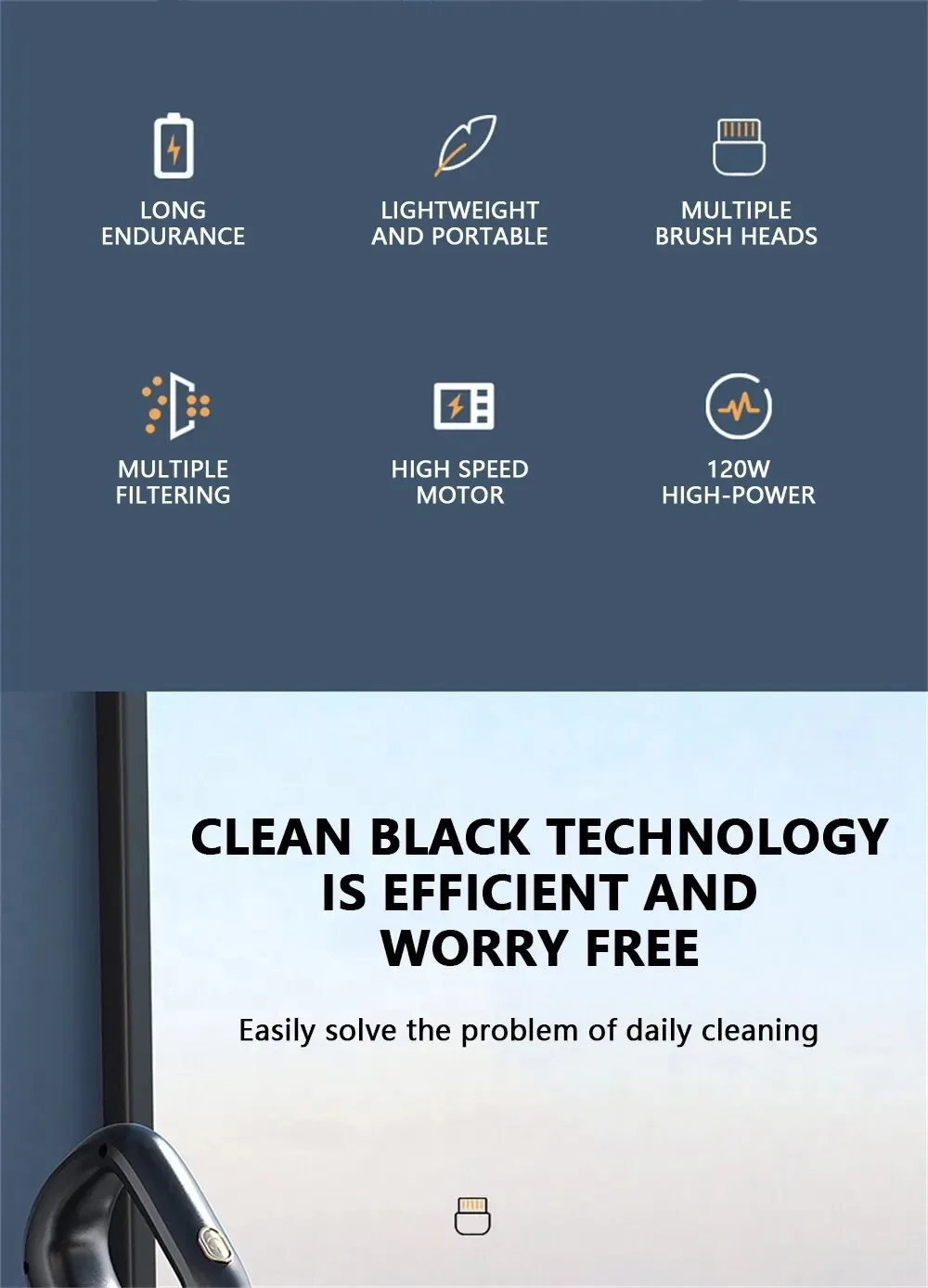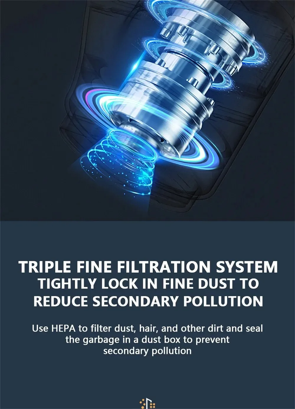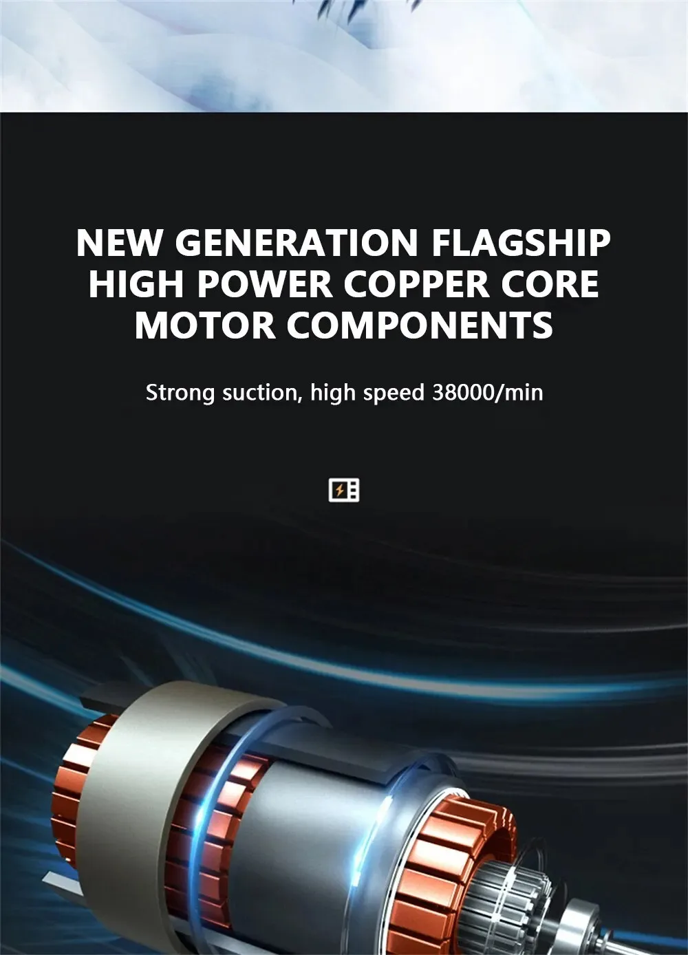 3. La potencia es de 120W y tiene un diseño húmedo y seco. La batería de litio de alto rendimiento con una capacidad de 2000mAh proporciona energía para que el motor cree una Excelente succión.