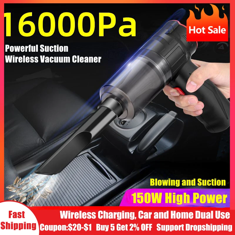 Comprar Aspiradora de mano portátil inalámbrica para coche y hogar, aspirador de succión fuerte y soplador de aire 2 en 1, 16000Pa