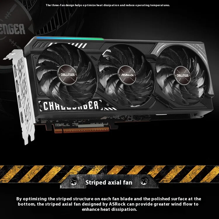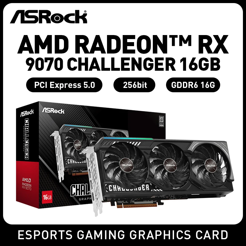 ASROCK AMD Radeon RX9070 CHALLENGER 16GB GDDR6 Tarjeta gráfica de 256 bits Tarjeta gráfica de computadora de escritorio de tres ventiladores Tarjeta de video para juegos