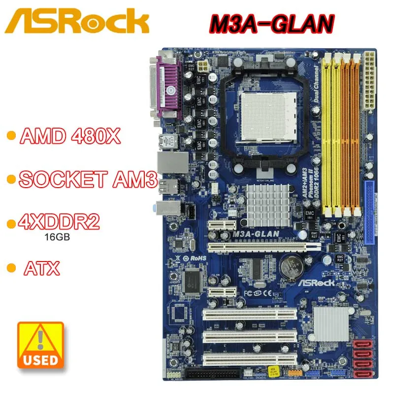 Comprar ASROCK-placa base AM3 M3A-GLAN, AMD 480X, 4xDDR2, 1066, 16GB, 4xsataii, USB 2,0, ATX