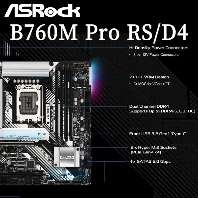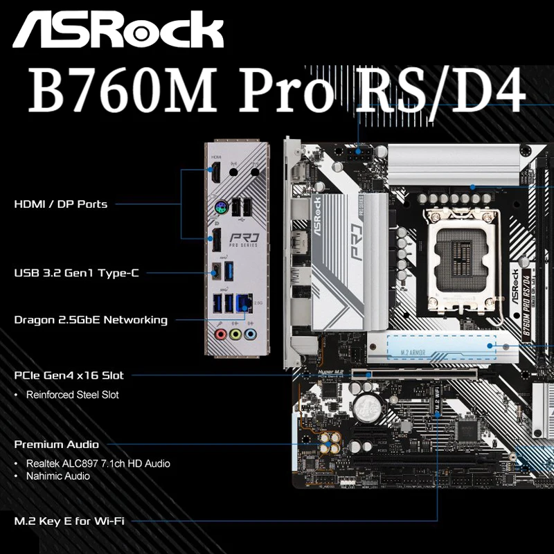 Modelo de placa base:B760M Pro RS/D4(100% nuevo, sin batería)