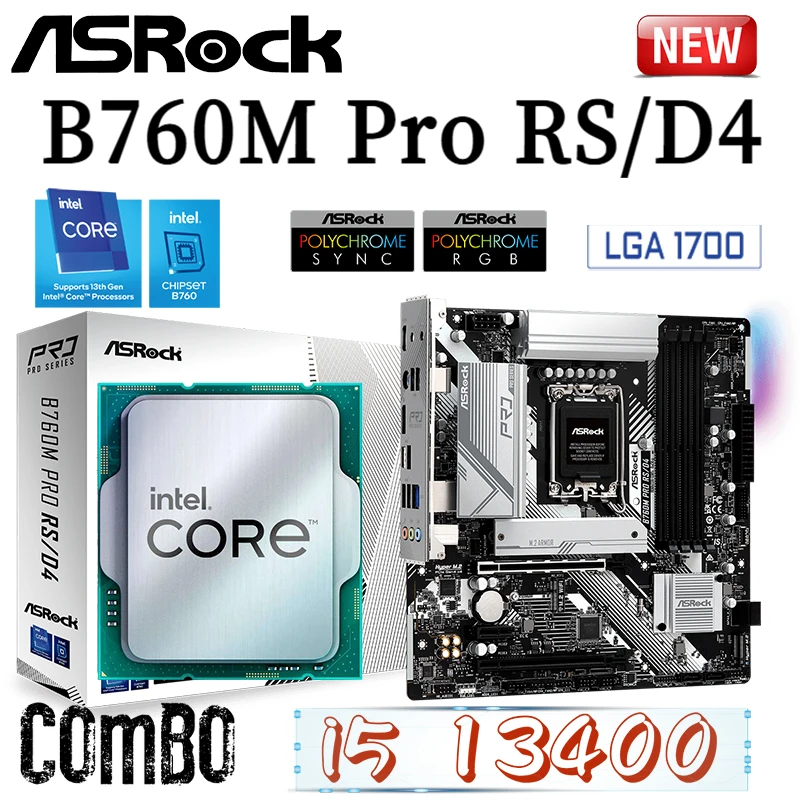 Comprar ASRock-placa base B760M Pro RS/D4 + Intel Core i5 13400 LGA 1700 CPU Combo DDR4 5333MHz RAM USB 3,2 PCIe 4,0 M.2, Nueva