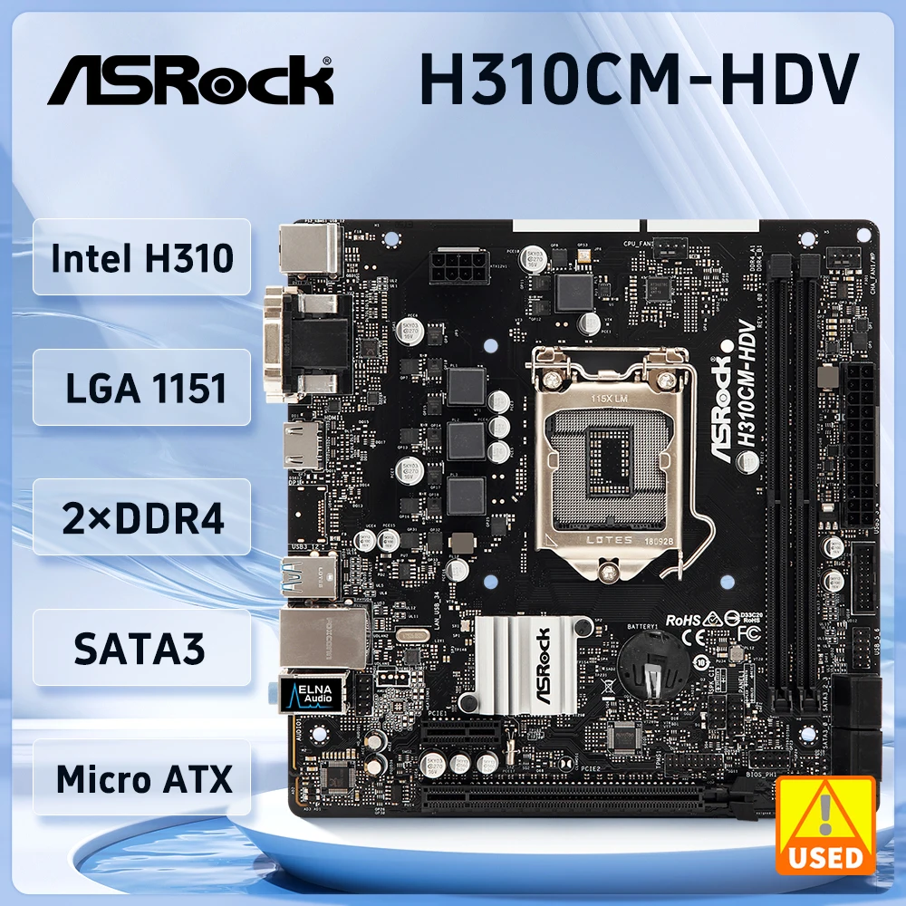 Comprar ASROCK-placa base H310CM-HDV LGA 1151, Intel H310, DDR4, 2666MHz, 32GB, USB 3,1, PCI-E 3,0, Micro ATX, compatible con i5-9400F, i7-8700