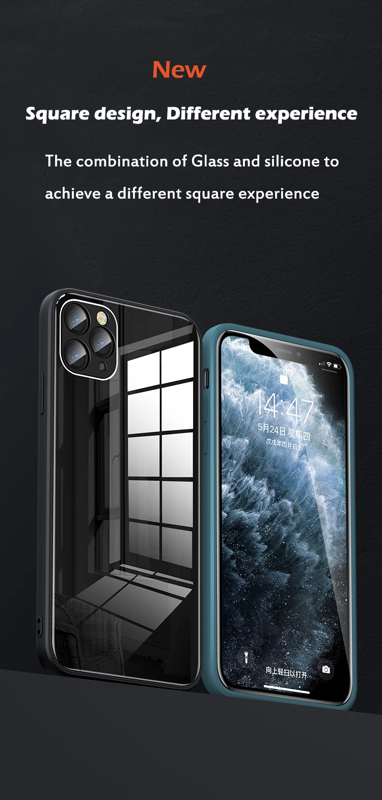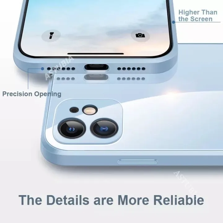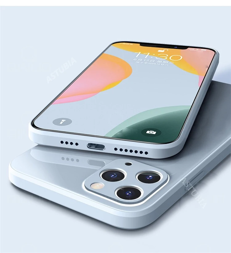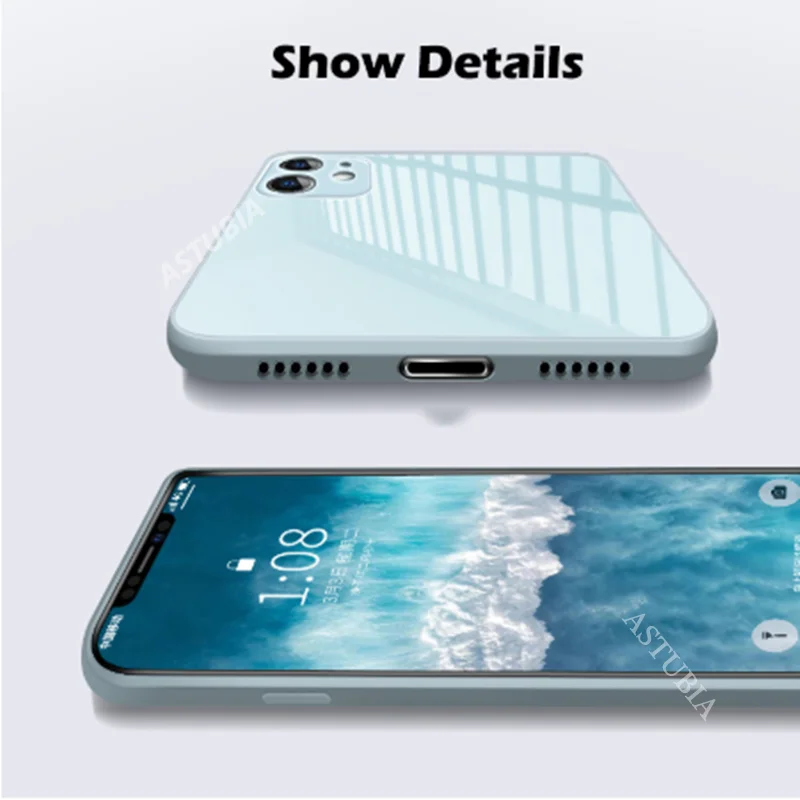 Comprar AST-funda de vidrio templado cuadrado para iPhone, carcasa trasera dura de silicona, de lujo, para modelos 13, 11, 12 Pro Max, Mini, XS, XR, X, 7, 8 Plus, SE 2020