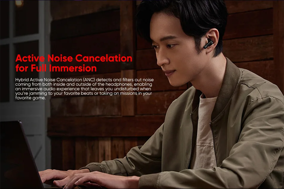 La cancelación activa de ruido para inmersión completa (ANC) detecta y filtra el ruido tanto dentro como fuera de los auriculares, lo que permite una experiencia de audio inmersiva
