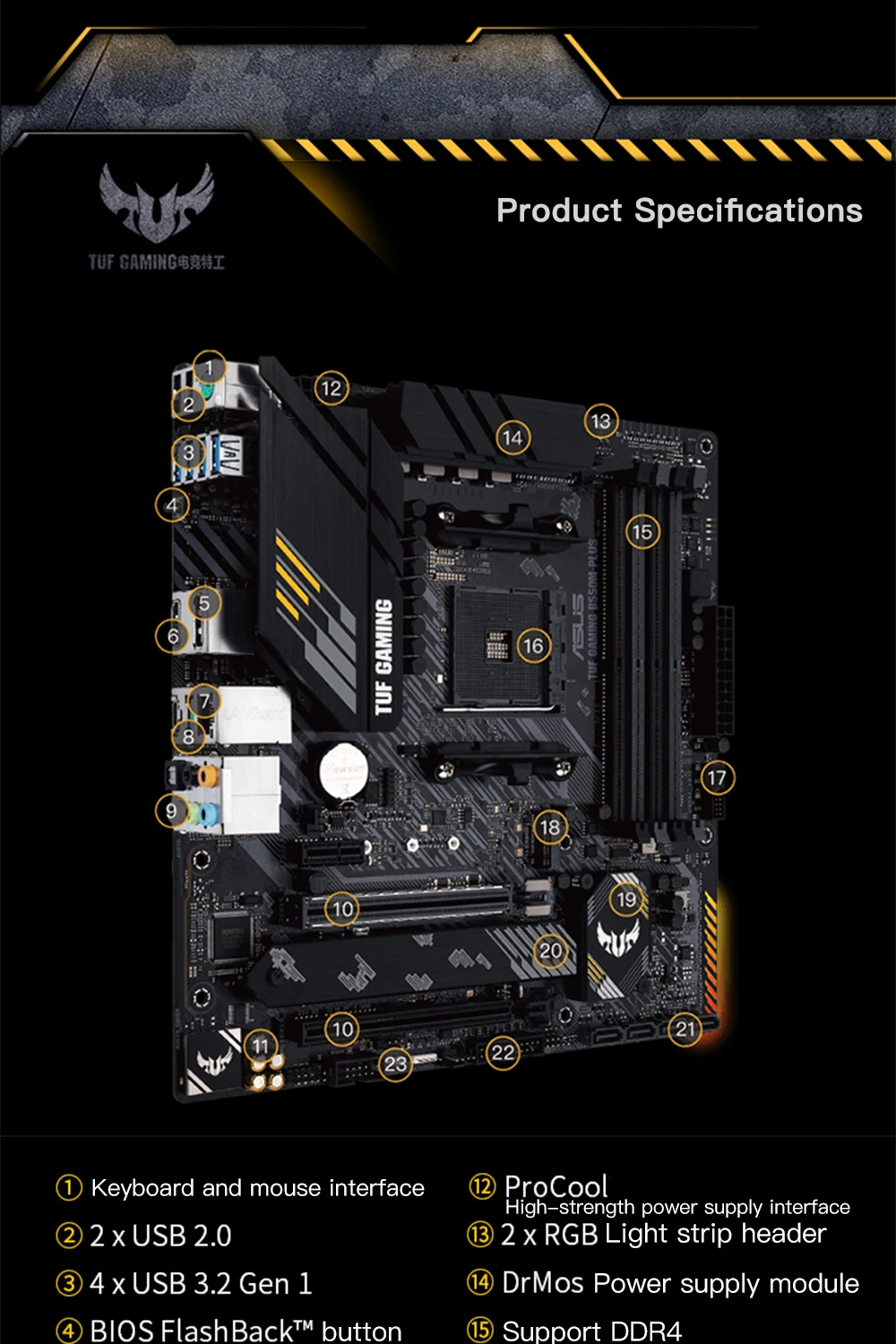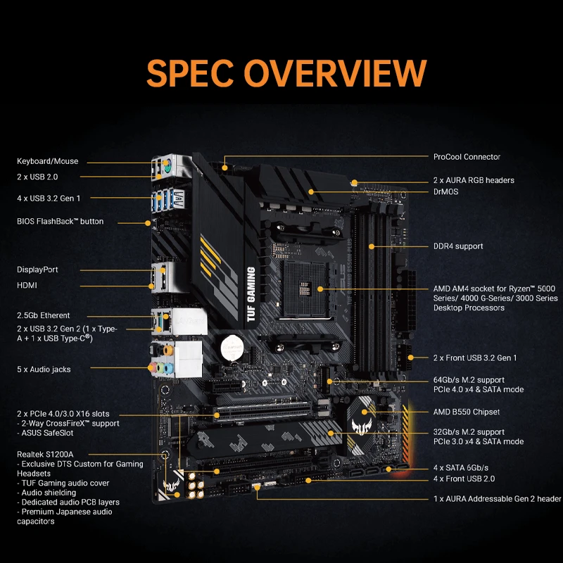ASUS nuevo TUF GAMING B550M PLUS Micro-ATX B550M conjunto de placa base DDR4 4600(OC) MHz 128G Socket AM4 compatible con procesador Ryzen