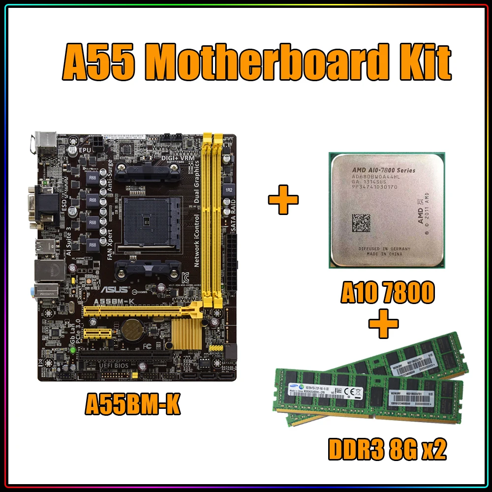 Comprar ASUS-Juego de placa base A55 AMD A10, A55BM-K + AMD A10 7800 + DDR3 8G * 2, frecuencia de CPU 3,4 GHz 4MB HT 2000MHz 95W