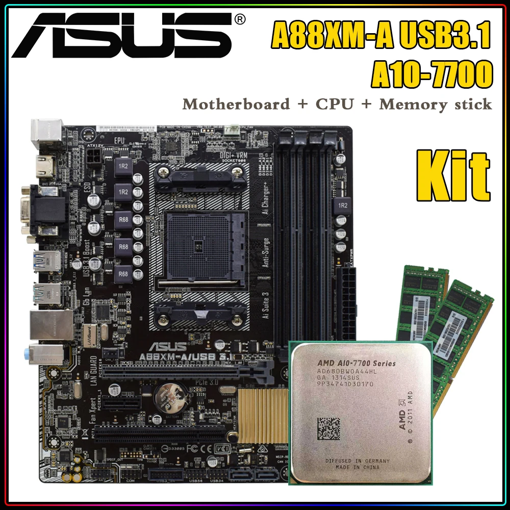 Comprar ASUS-Kit de placa base A88XM-A USB 3,1, procesador de cuatro núcleos, AMD A10 con DDR3 8G + A10 7700 CPU FM2/FM2 +, CPU 3,4 GHz (OC) 3,8 GHz