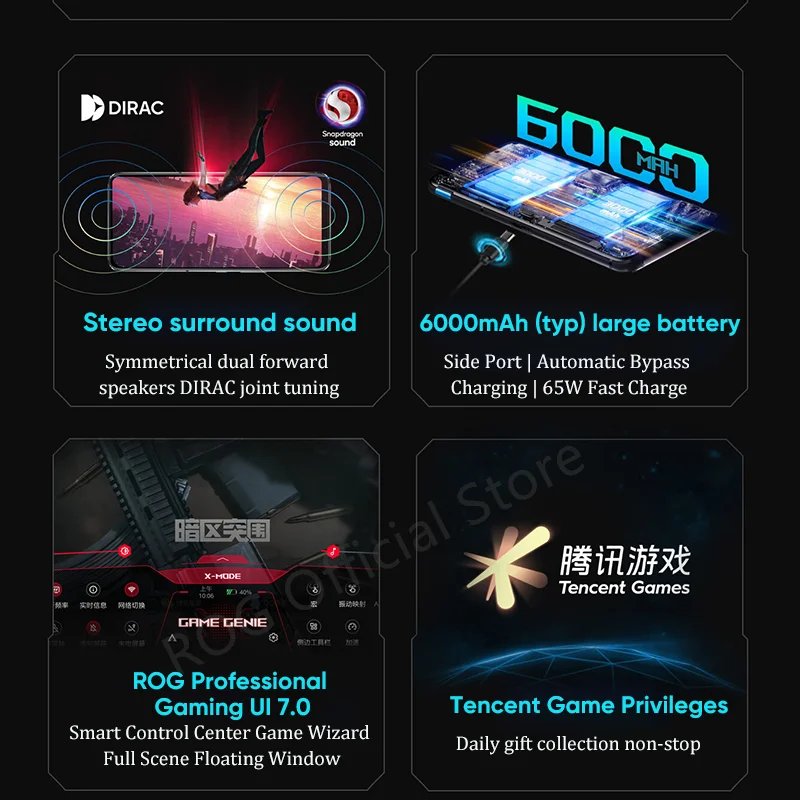 Si los auriculares, Ya sean analógicos, de audio o inalámbricos, son su opción de audio, le encantarán los ROG 7. Desde su conector para auriculares de 3,5mm hasta su Dirac Virtuo™Sonido espacial similar al de un teatro, tiene toda la tecnología para todo el sonido. Qualcomm® aptX™Y el soporte aptX Lossless garantiza un audio Bluetooth de alta fidelidad de latencia superbaja, por lo que sea cual sea su elección auditiva, sus oídos le agradecerán el ROG 7.