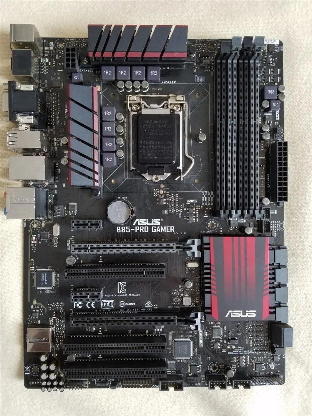 Chip placa baseTarjeta de sonido con chip integrado/tarjeta de redChipset principal Intel B85La Descripción del chipset adopta el chipset Intel B85Chip de pantalla CPU chip de pantalla incorporado (se requiere soporte de CPU)Chip de audio integrado con chip de audio de 8 canales Realtek alc1150Chip de tarjeta de red Intel i217v tarjeta de red GigabitEspecificaciones del procesadorTipo de CPU Core i7 / i5 / I3 / Pentium / CeleronRanura para CPU LGA 1150Descripción DE LA CPU compatible con el procesador Intel 22nmEspecificación de memoriaTipo de memoria 4 × DDR3 DIMMCapacidad máxima de memoria 32GBLa Descripción de la memoria admite memoria DDR3 1600 / 1333 / 1066MHz de doble canalExtensión de almacenamientoPCI-E estándar PCI-E 3,0Ranura PCI-E 2 × PCI-E x16 ranura para tarjeta gráfica, 2 × ranura PCI-E X1Ranura PCI 3 × ranura PCIInterfaz de almacenamiento 4 × interfaz SATA III, 2 × interfaz SATA IIInterfaz I/OInterfaz USB 4 × USB3.0 interfaz (2 incorporados + 2 backplane), interfaz USB2.0 8 × (4 incorporados + 4 backplane)Interfaz de vídeo: 1 interfaz DVI, 1 interfaz VGA, 1 interfaz HDMI.Conector de alimentación: un conector de alimentación de 8 pines, uno de 24 pinesOtras interfaces: 1 × interfaz de red RJ45, interfaz de audio, 1 × PS ratón/2, 1 × interfaz de teclado PS / 2Tipo placaTablero principal tipo ATX tipo tableroComprar Asus-placa base de escritorio B85-PRO GAMER, B85 Socket LGA 1150 i7 i5 i3 DDR3 32G SATA3 USB3.0 ATX
