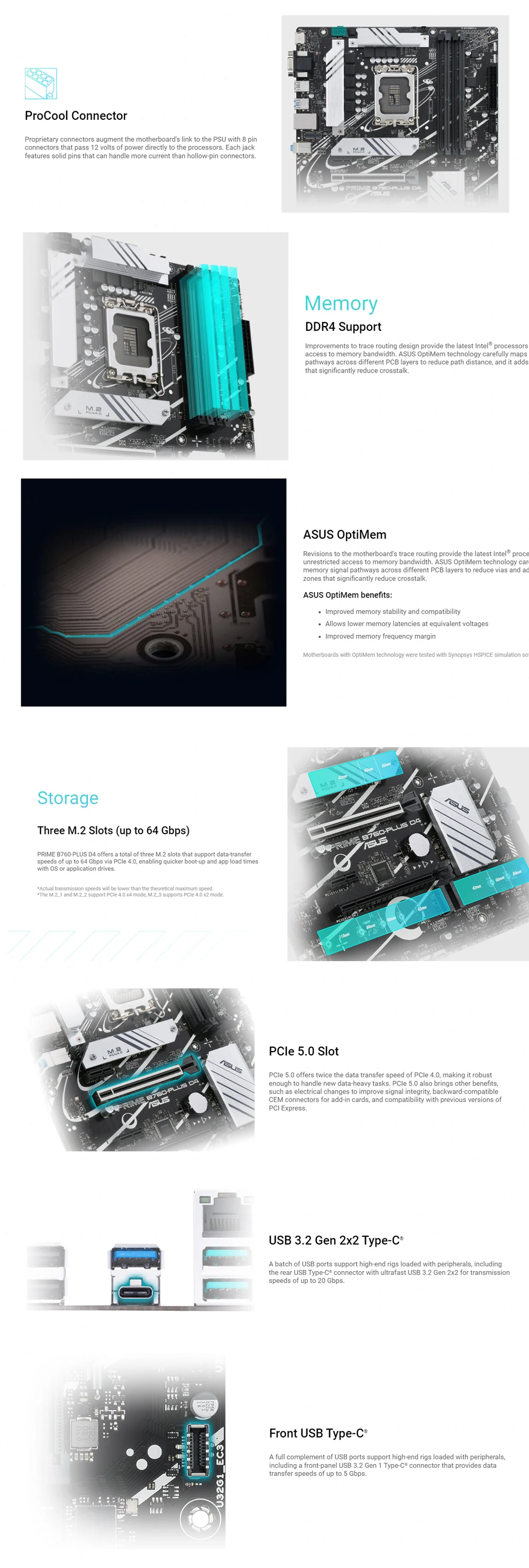 Comprar ASUS-placa base Intel B760 LGA 1700 PRIME B760-PLUS D4, placa base ATX DDR4 de doble canal 128G, para juegos de escritorio, PCIe 5,0 M.2