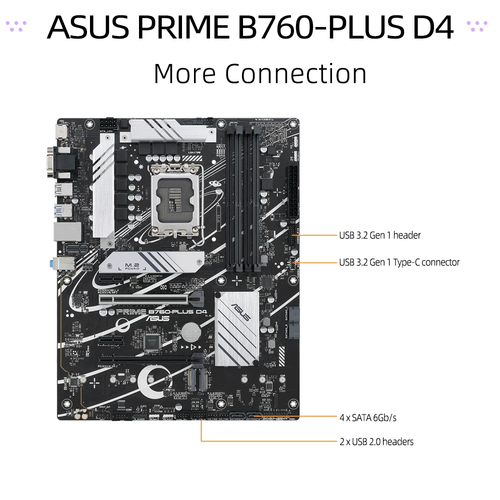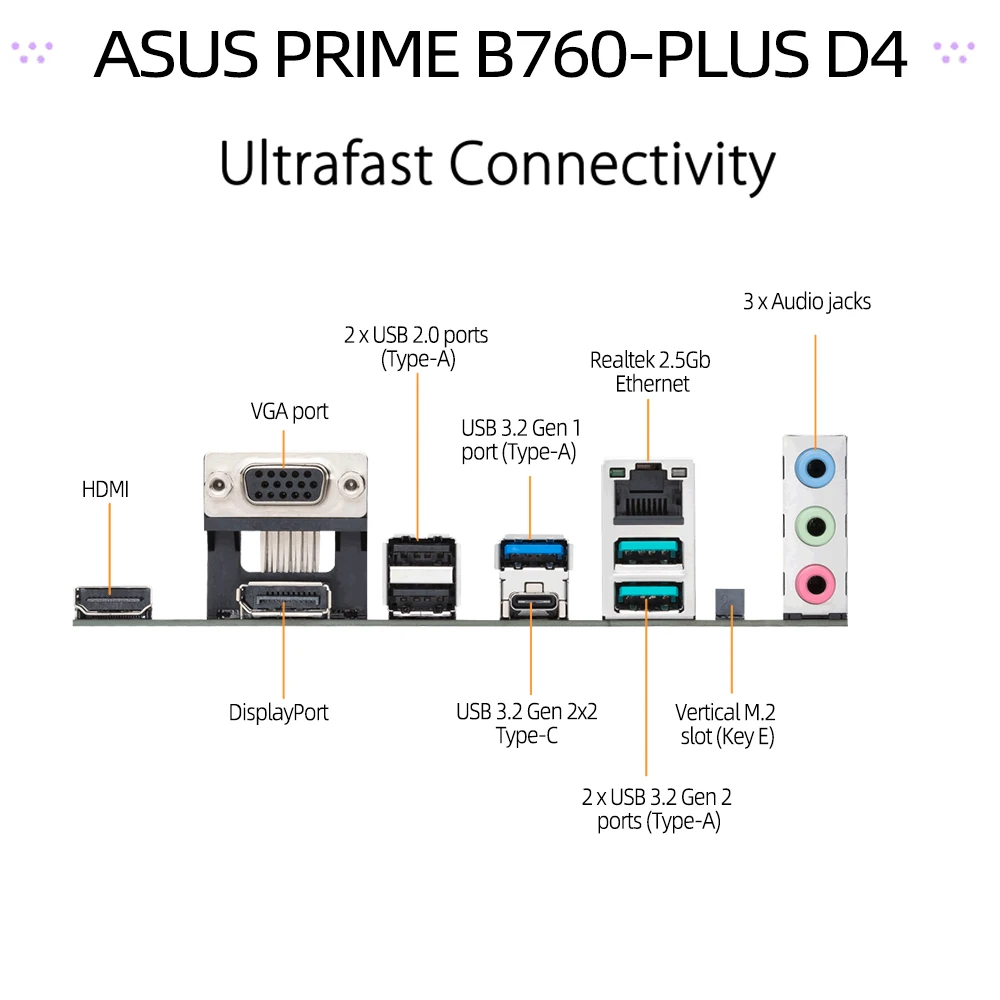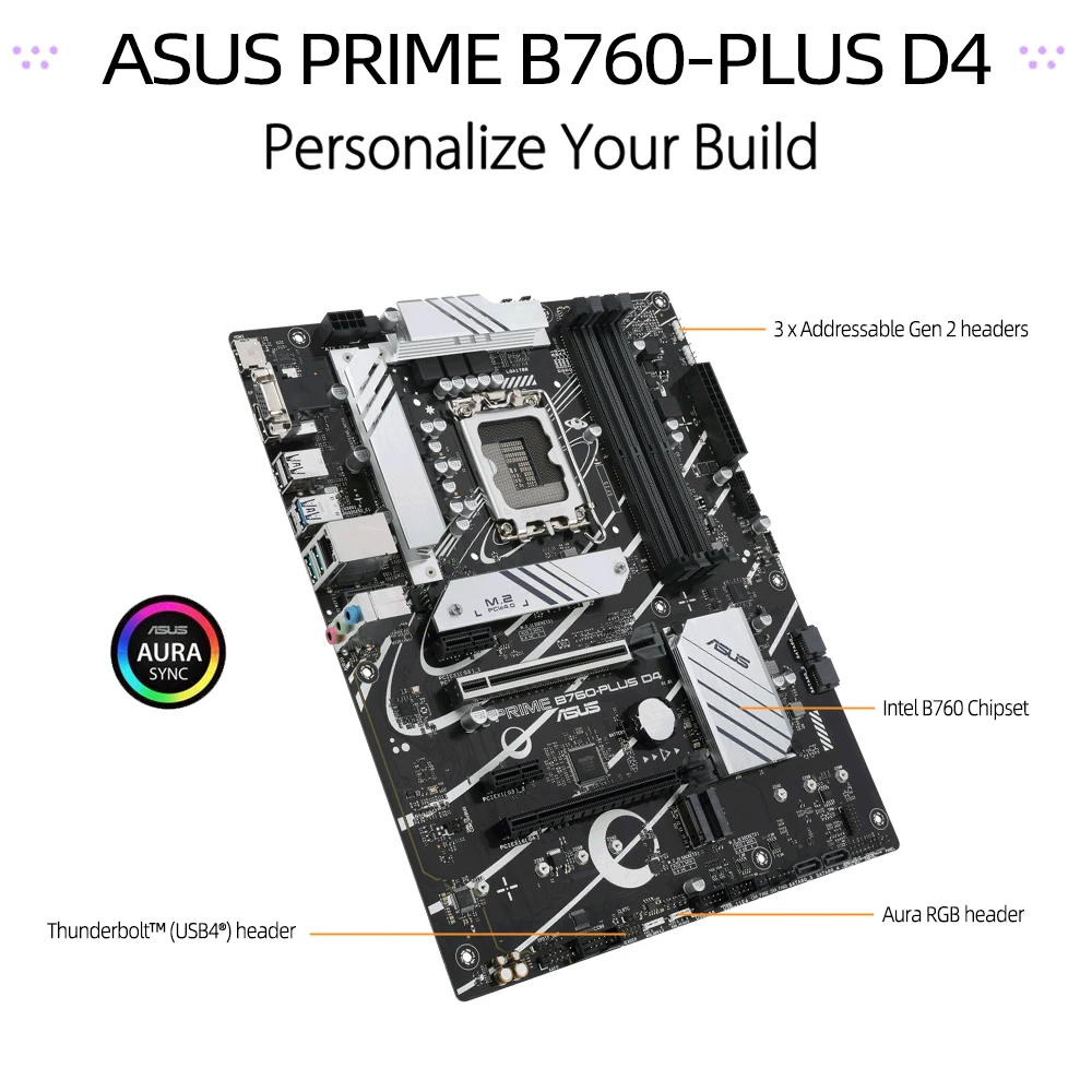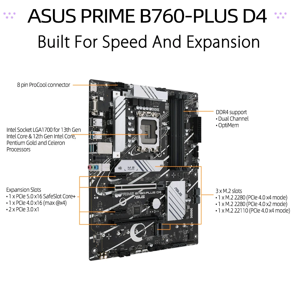 Comprar ASUS-placa base Intel B760 LGA 1700 PRIME B760-PLUS D4, placa base ATX DDR4 de doble canal 128G, para juegos de escritorio, PCIe 5,0 M.2