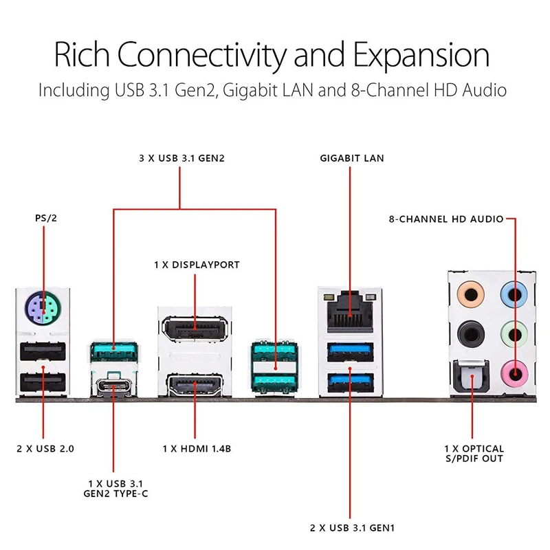 Interfaz USB 4 × USB3.1 Gen 2 Interfaz, 4 × USB3.1 Gen 1 interfaz, 6 × USB2.0 interfaz