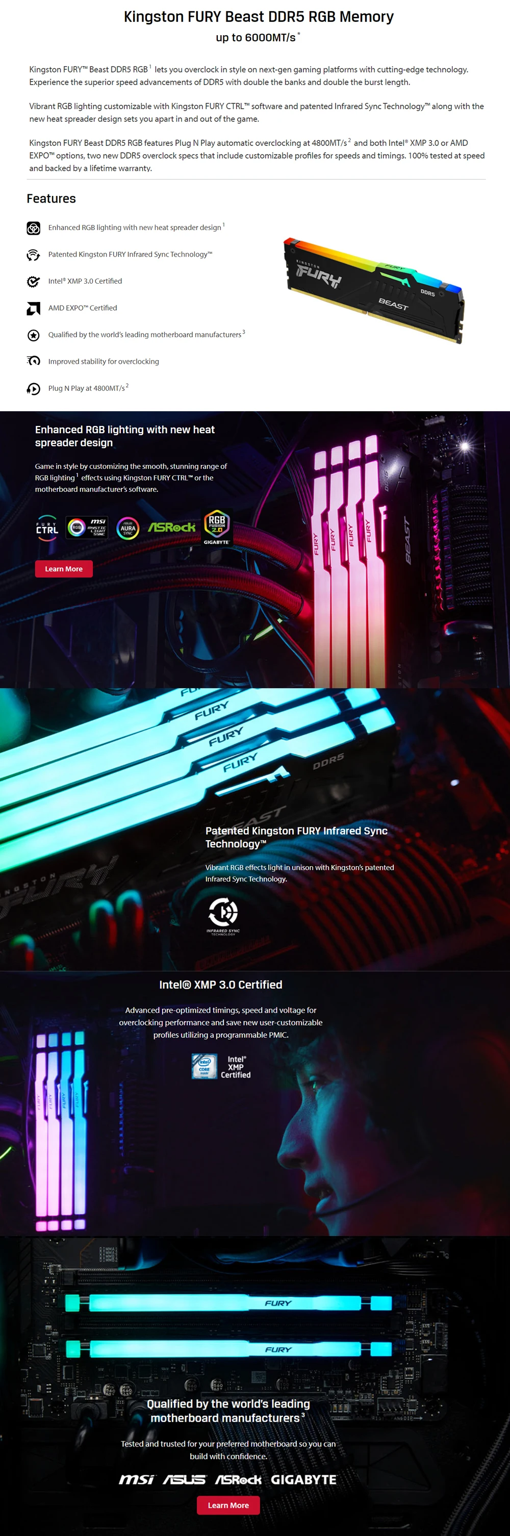 Modelo RAM: Kingston Fury Beast DDR5 5600MHz 16GB x 2 RGB EXPO (nuevo).