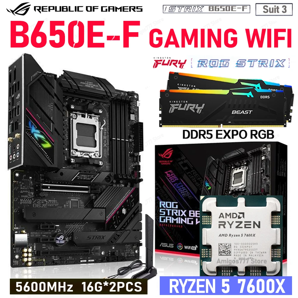 ASUS ROG STRIX juegos WIFI DDR5 placa base Socket AM5 Kit Ryzen CPU R5 7600X con Kingston DDR5 5600MHz 16GB * 2pcs RGB EXPO memoria nuevo AMD B650 Set