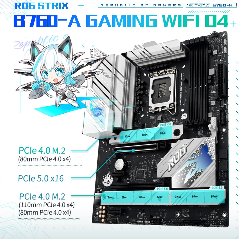 Comprar Asus-placa base ROG STRIX para juegos, B760-A con WIFI D4, color blanco, LGA 1700 CPU, compatible con Core i7 13700K, nuevo, Intel B760, M-ATX, WI-FI 6E, M.2