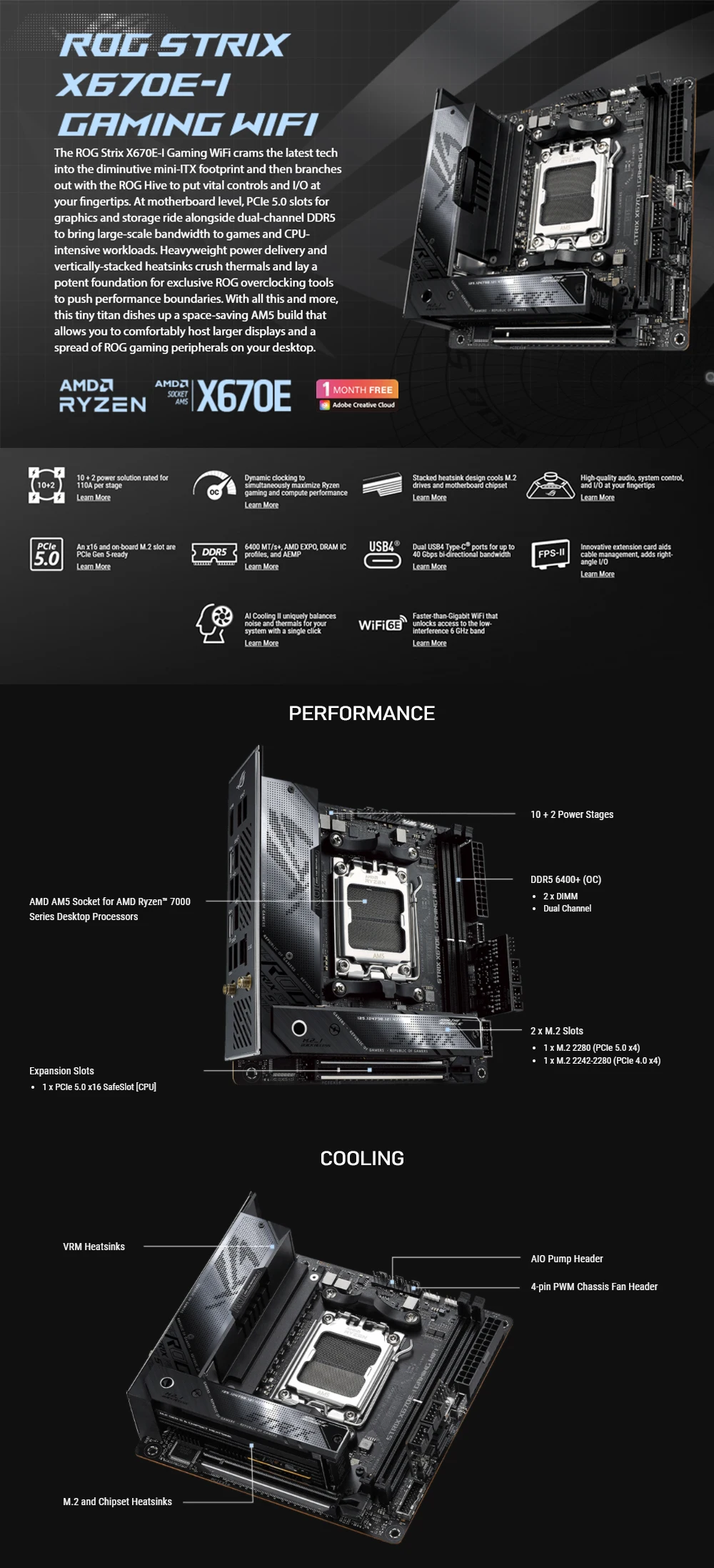 Comprar ASUS-placa base ROG STRIX X670E-I para videojuegos, procesador AMD AM5, DDR5, 64G, mini-itx, PCIe, 5,0 M.2, compatible con la serie 7000, CPU Ryzen, WIFI, 6E Placa base para juegos Socket AM5 AMD X670 ITX