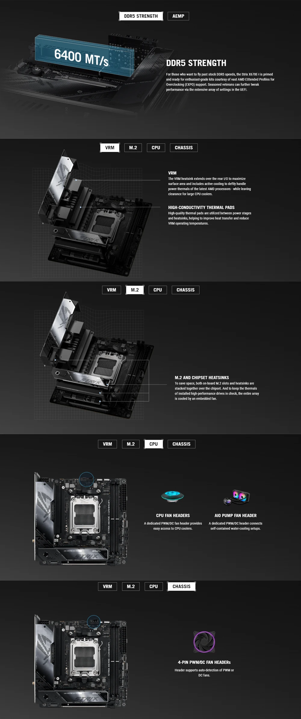Diseño térmico optimizado: disipador térmico VRM activo con almohadillas térmicas de alta conductividad y un disipador térmico M.2 Gen 5 y chipset.