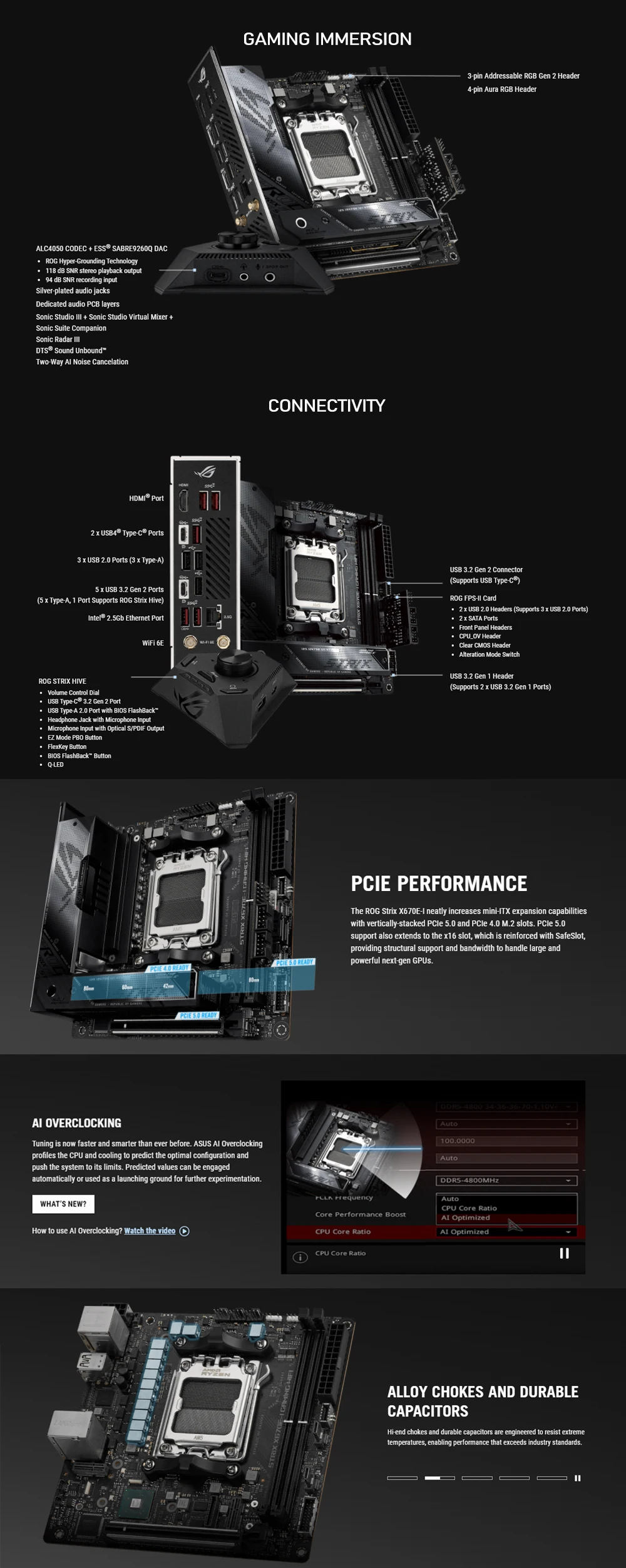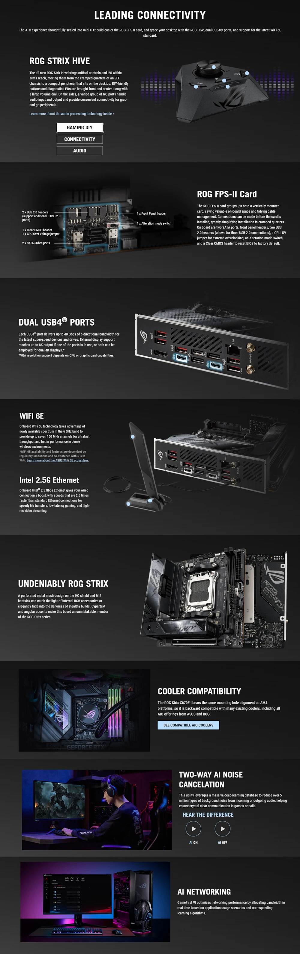 ASUS ROG STRIX-Placa base para juegos, placa base para juegos DDR5 Socket AM5 Mini-ITX PCIe 5,0, nuevo compatible con procesadores de escritorio de la serie 7000, AMD RYZEN CPU R3 R5 R7 R9 sin batería
