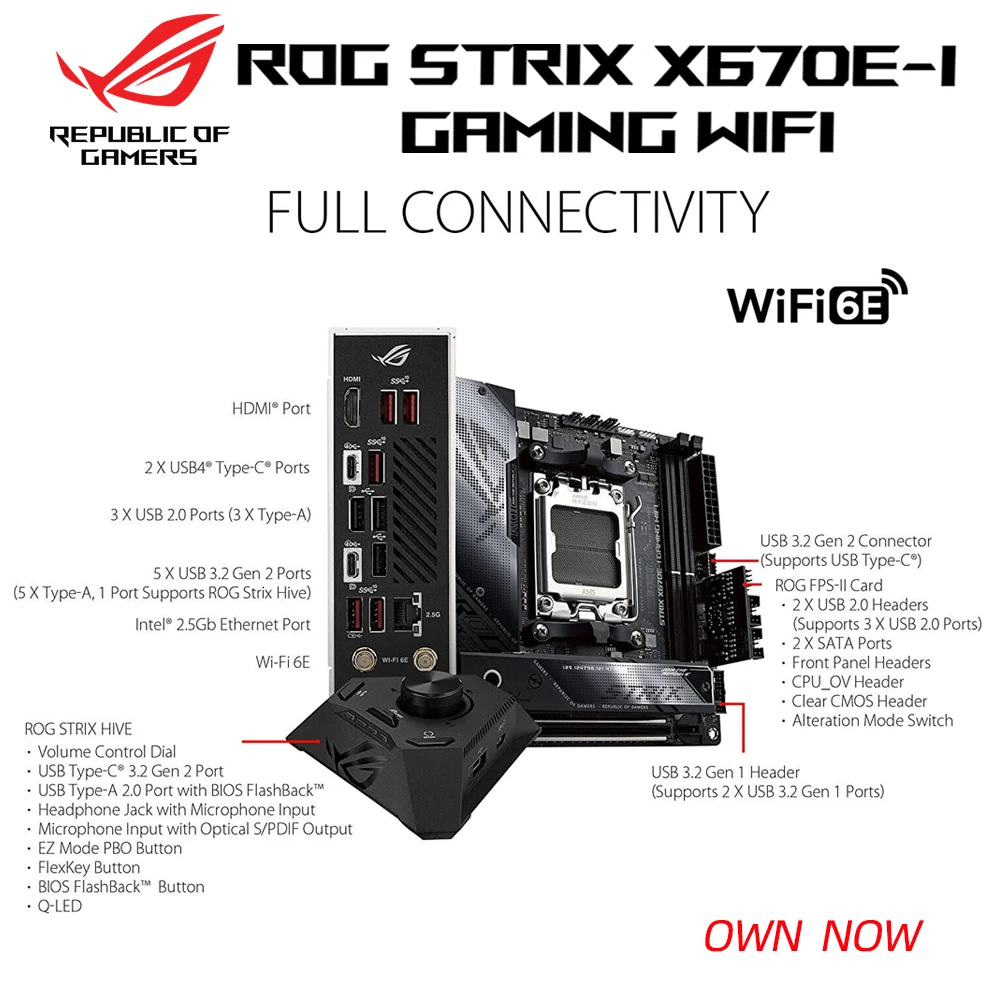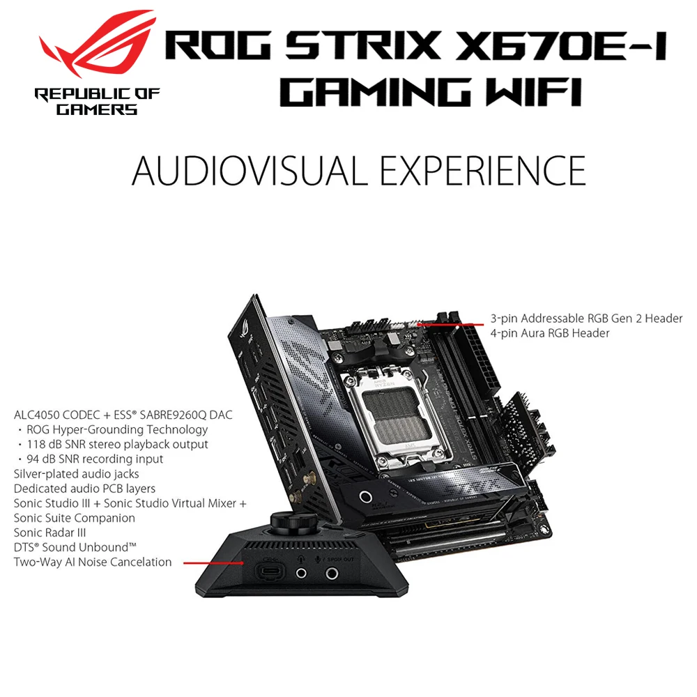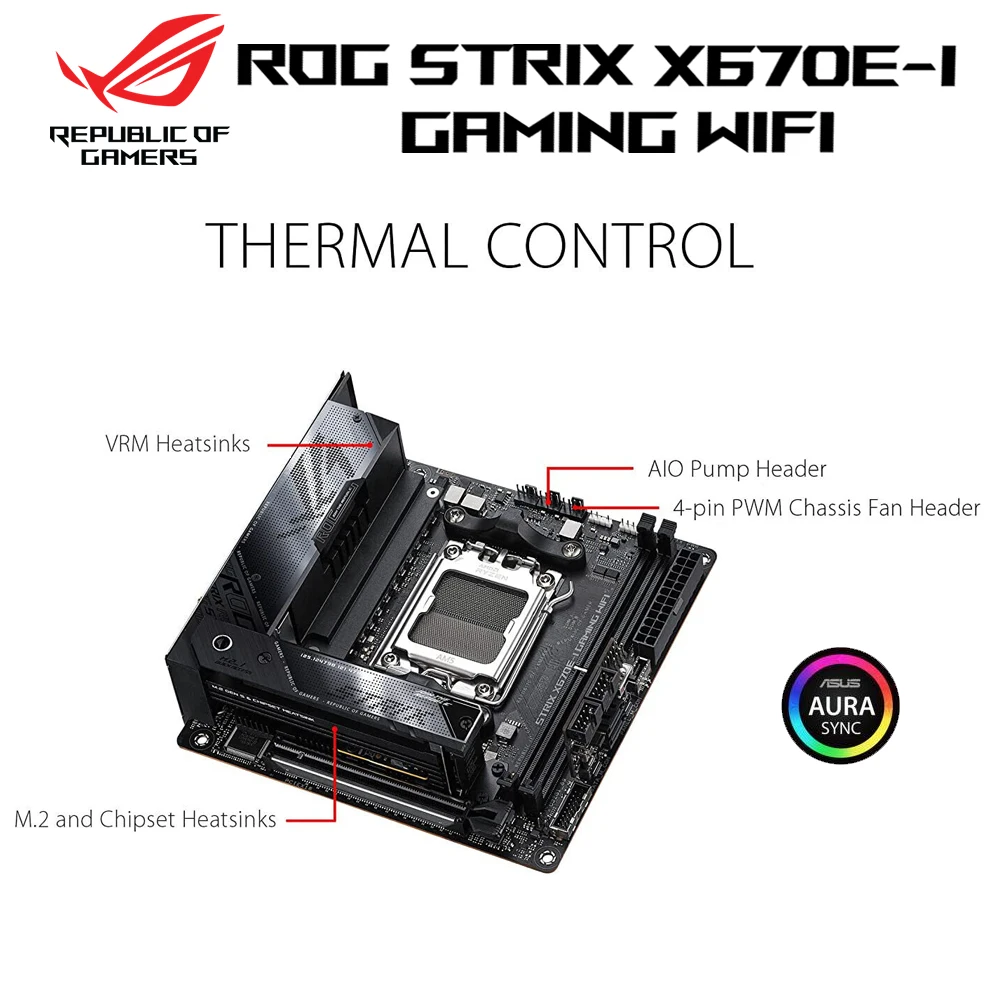 Comprar ASUS-placa base ROG STRIX X670E-I para videojuegos, procesador AMD AM5, DDR5, 64G, mini-itx, PCIe, 5,0 M.2, compatible con la serie 7000, CPU Ryzen, WIFI, 6E Placa base para juegos Socket AM5 AMD X670 ITX