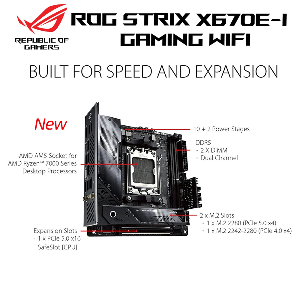 ASUS ROG STRIX-Placa base para juegos, placa base para juegos DDR5 Socket AM5 Mini-ITX PCIe 5,0, nuevo compatible con procesadores de escritorio de la serie 7000, AMD RYZEN CPU R3 R5 R7 R9 sin batería