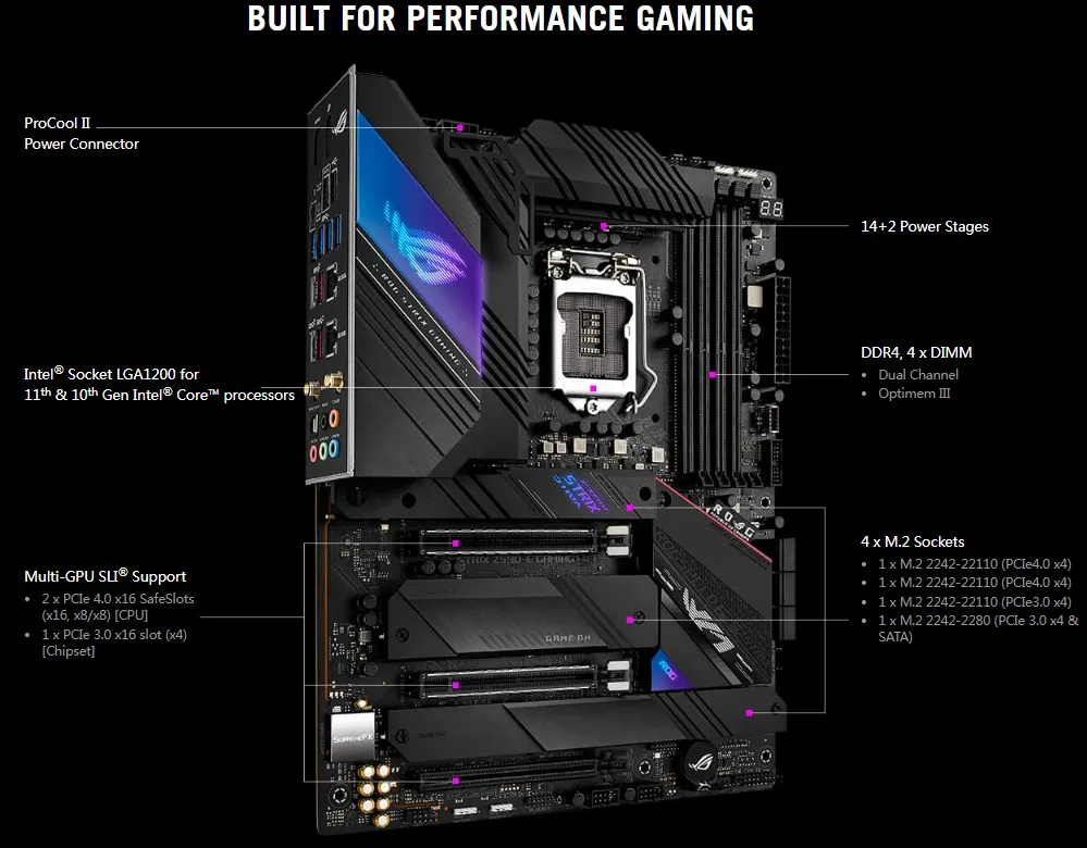 Comprar ASUS-placa base ROG STRIX Z590-E para videojuegos, dispositivo con WIFI, Intel Z590, DDR4, PCI-E 1200, 4 × M.2, USB3.2, ATX, para cpu Core de 11. ª y 10. ª generación, 4,0