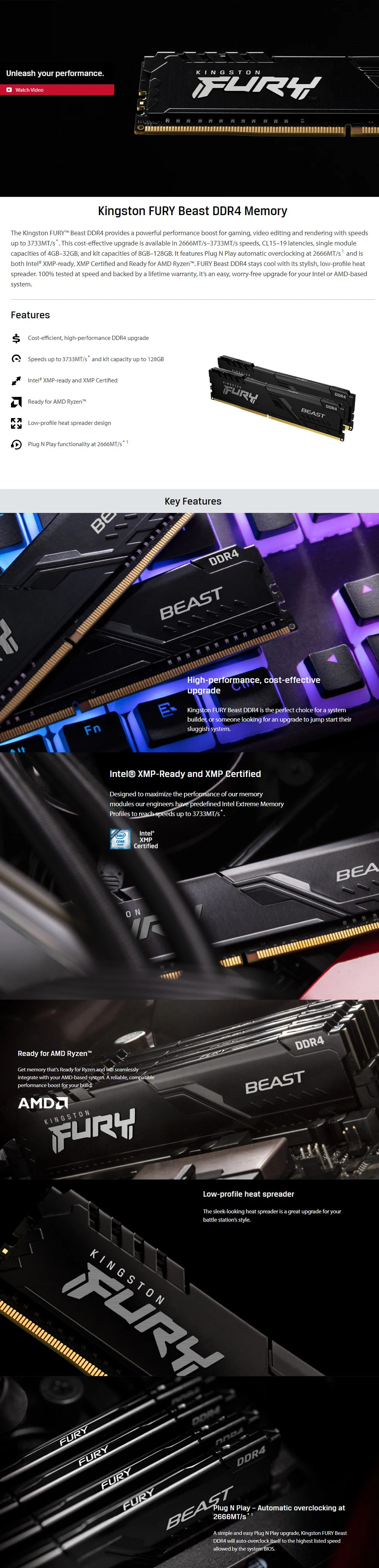 RAM Model: Kingston Fury DDR4 3200MHz 8GB x 2 PCS (New)
