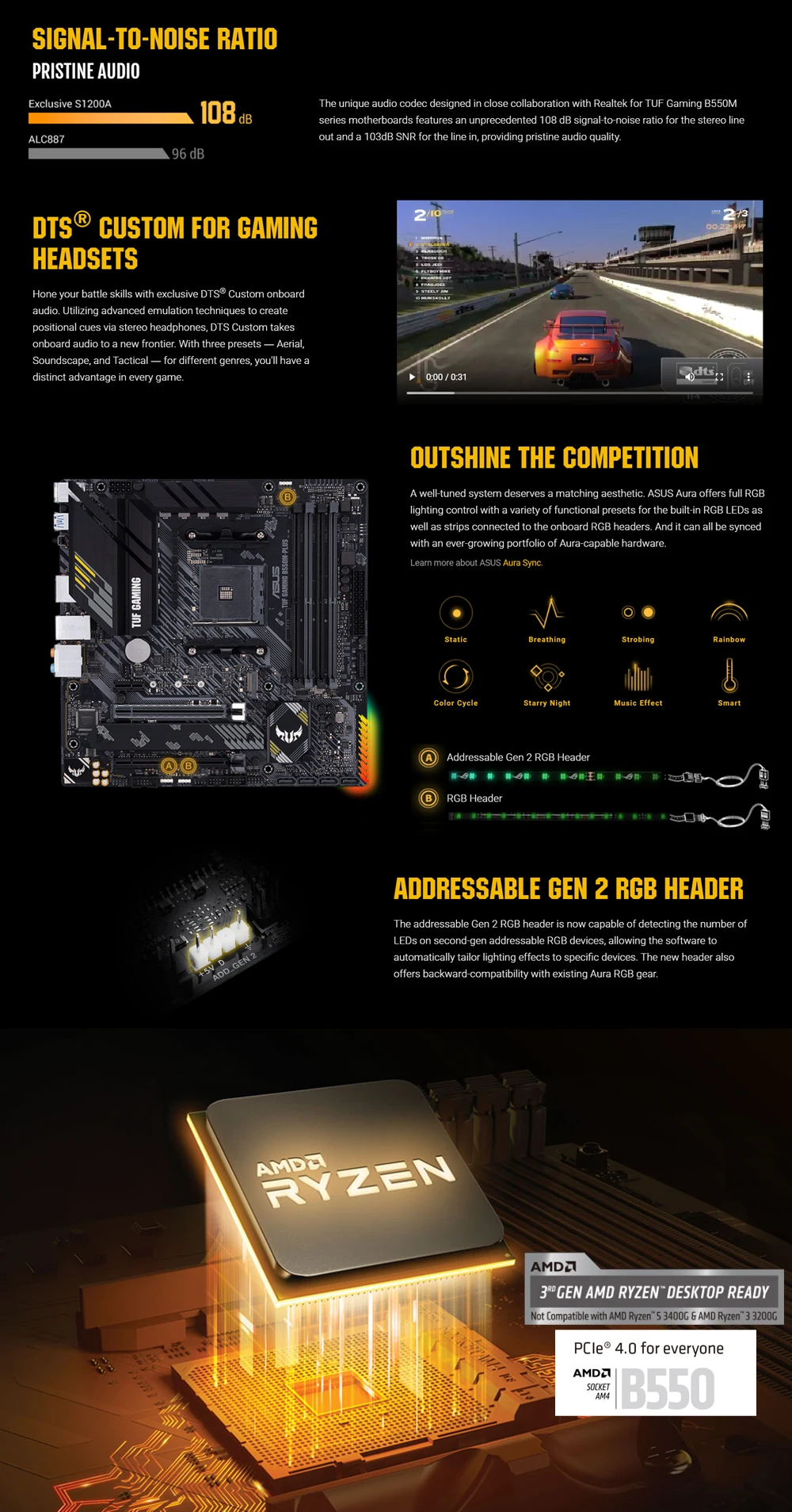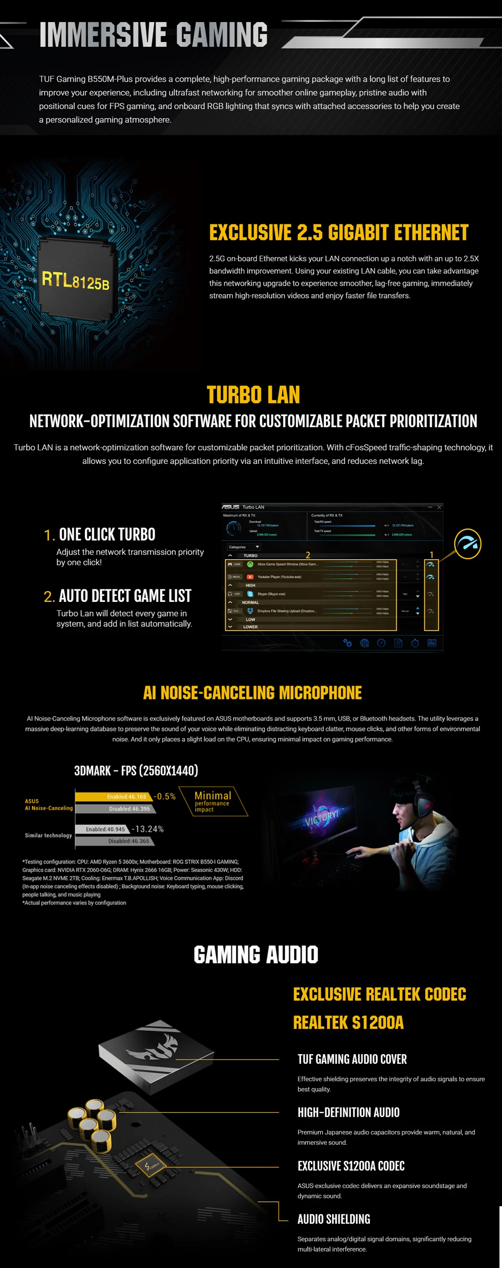 Industry-leading Gaming Audio & AI Noise Cancelling Mic Technology: High fidelity audio from a SupremeFX S1220A codec with DTS Sound Unbound and Sonic Studio III draws you deeper into the action