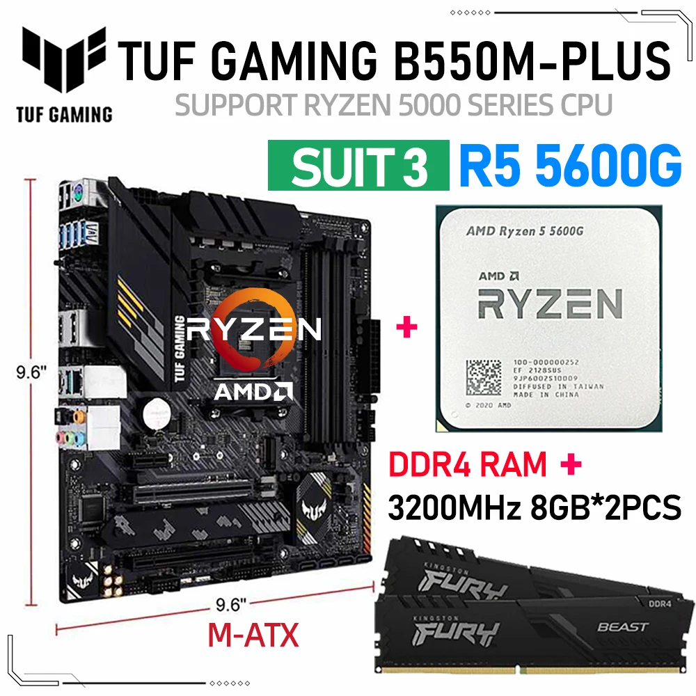 Suit 3-Motherboard + CPU + RAM - ASUS TUF GAMING B550M PLUS + R5 5600G + 3200MHz 8GB x 2PCS