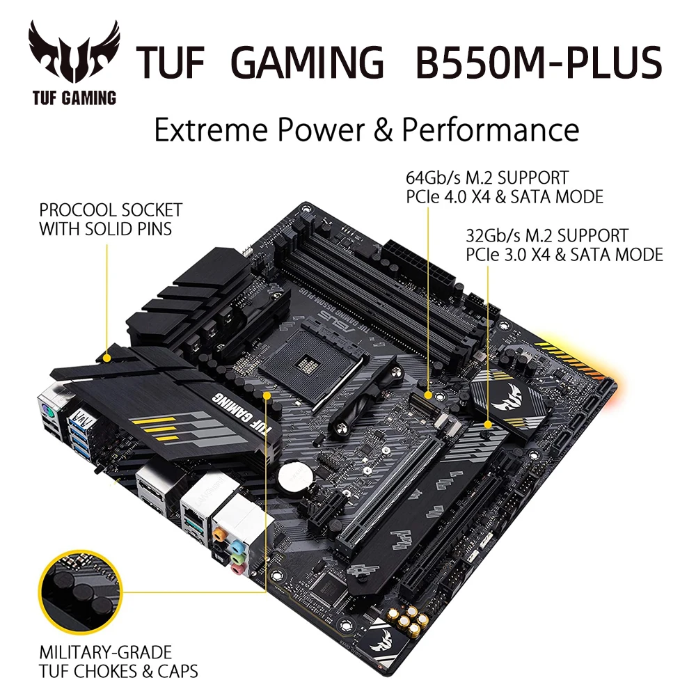 ASUS TUF GAMING B550M-PLUS Motherboard Socket AM4(AMD Ryzen™ 5000 Series CPU ) Ryzen 5 7 9 R5 5600G 5700G 5600X R7 5700X R9 5900X 5950X CPU Processo ASUS TUF GAMING B550M-PLUS WiFi II GIGABYTE GA B550M AORUS ELITE MSI B550M PRO-VDH WIFI MSI MAG B550M MORTAR MAX WIFI SOYO Monarch Dragon AMD B550M MAXSUN Terminator B550M AMD SOYO AMD B550M GIGABYTE New GA B550M DS3H Asgard W2 series RGB RAM ddr4 8GBx2 16GBx2 3200MHz Netac Ram Memory DDR4 RGB Asgard Loki w2 Kllisre DDR3 DDR4 JUHOR Memoria GIGABYTE B550M AORUS ELITE AMD B550 Socket AM4 ASUS New TUF GAMING B550M-PLUS WiFi II SOYO AMD B550M MAXSUN Terminator B550M MSI MAG B550M MORTAR WIFI ASUS PRIME B550M-K ASUS TUF GAMING B550M PLUS Full New Dragon A520M Atermiter DDR4 Ram 8GB 4GB 16GB 32GB PC4 Kingston HyperX FURY RAM DDR4 RGB Memory 2400MHz 2666MHz 3000MHz 3200MHz 3466MHz DIMM XMP Memoria ddr4 for Desktop Memory Ram