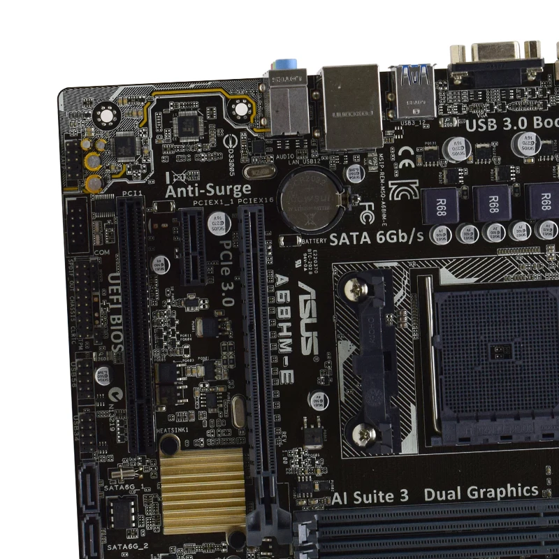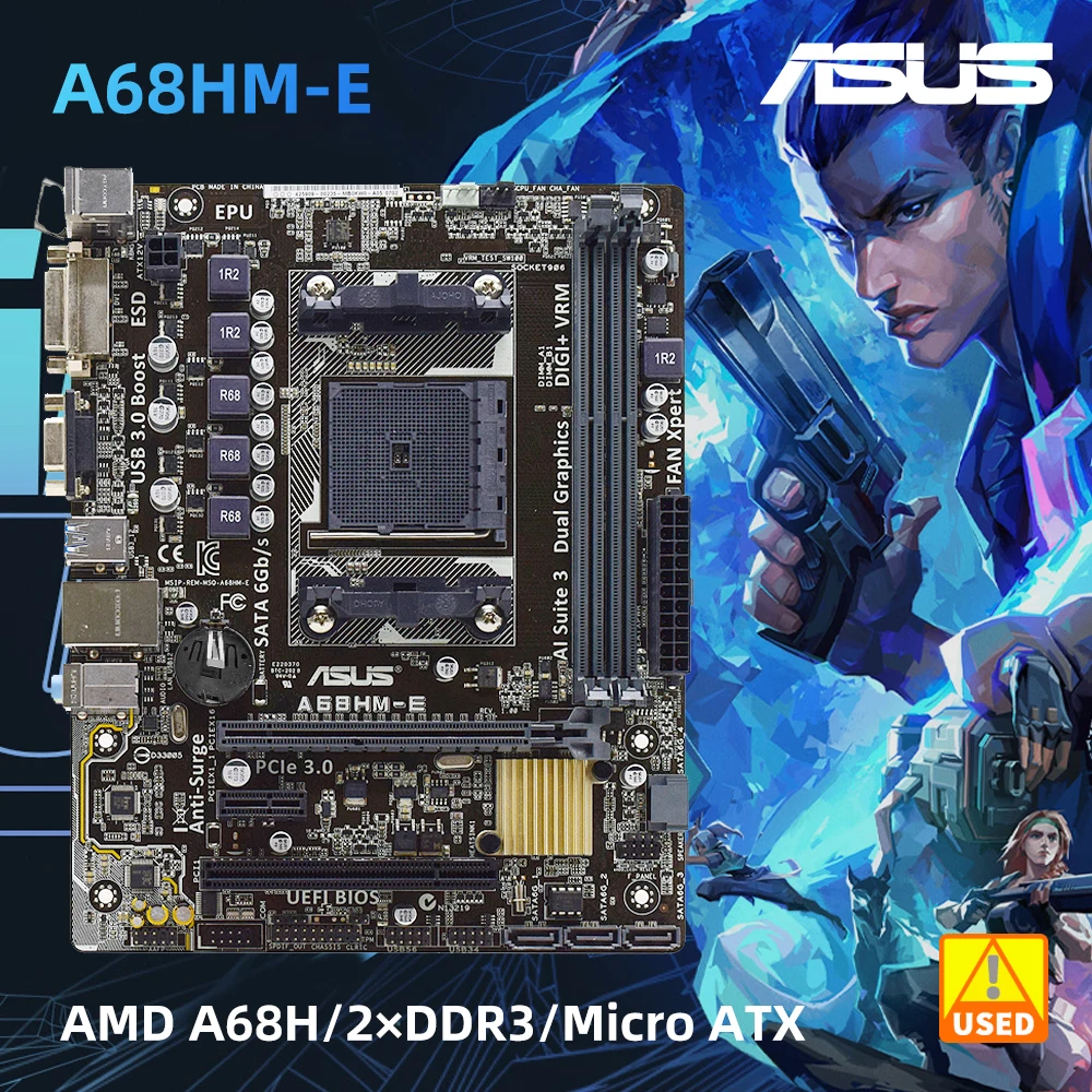 Comprar ASUS-placa base usada AMD A68H, Micro ATX, A68HM-E, FM2/FM2 + 2 x DDR3 DIMM 32GB PCI-E3.0 SATA3 USB3.0 DVI