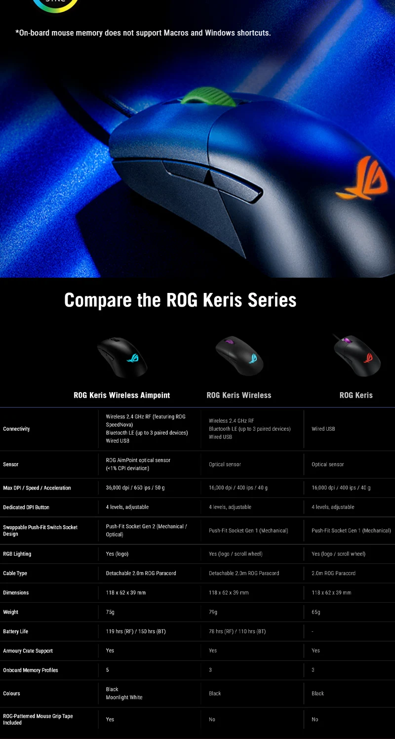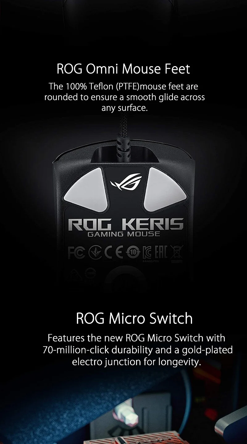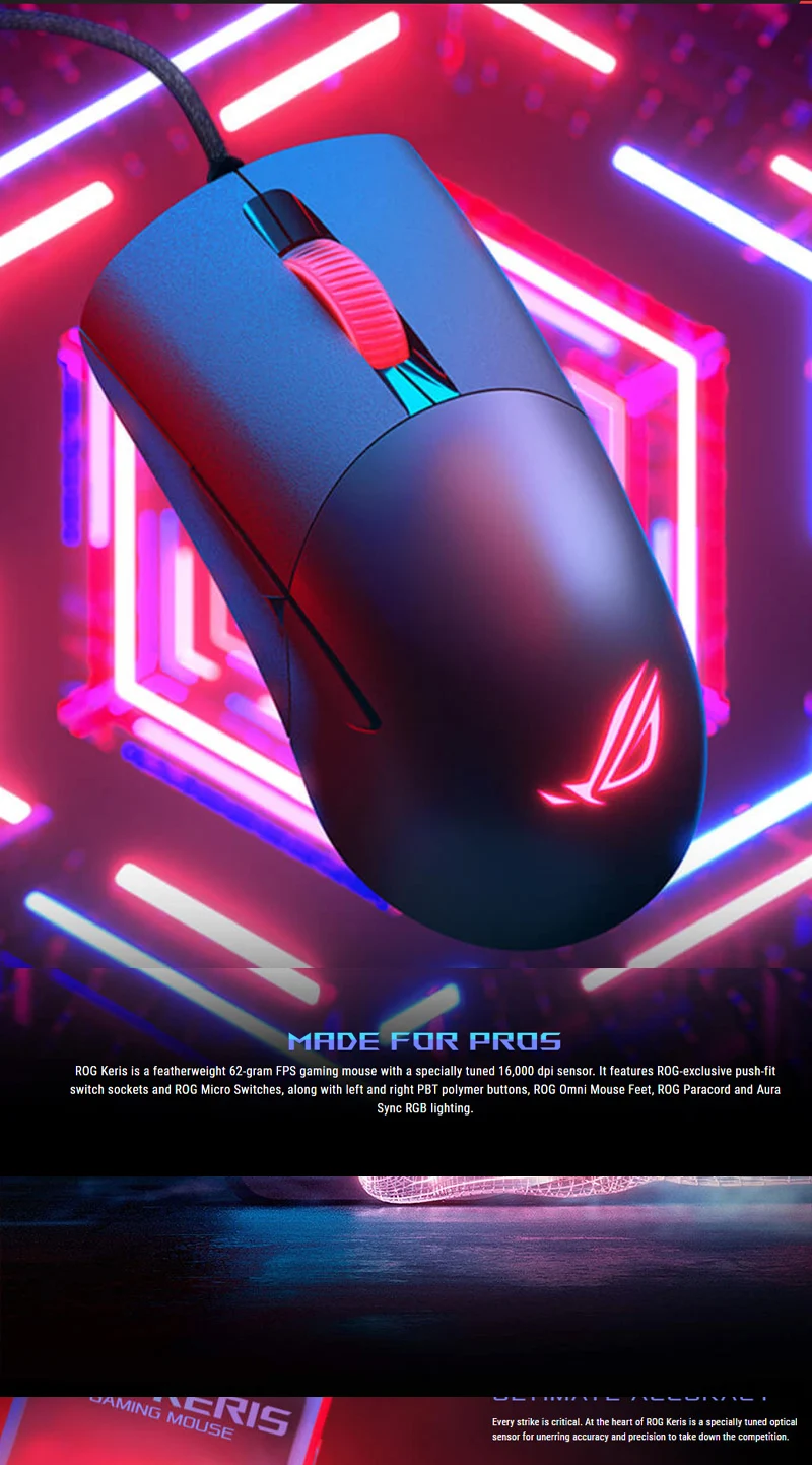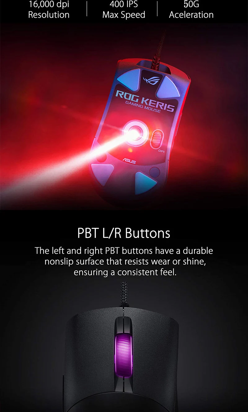 Comprar ASUS ROG Keris-ratón óptico Original Aura Sync, iluminación RGB para juegos, USB, con cable/2,4 Ghz, inalámbrico, 16000 DPI, 7 Botones programables
