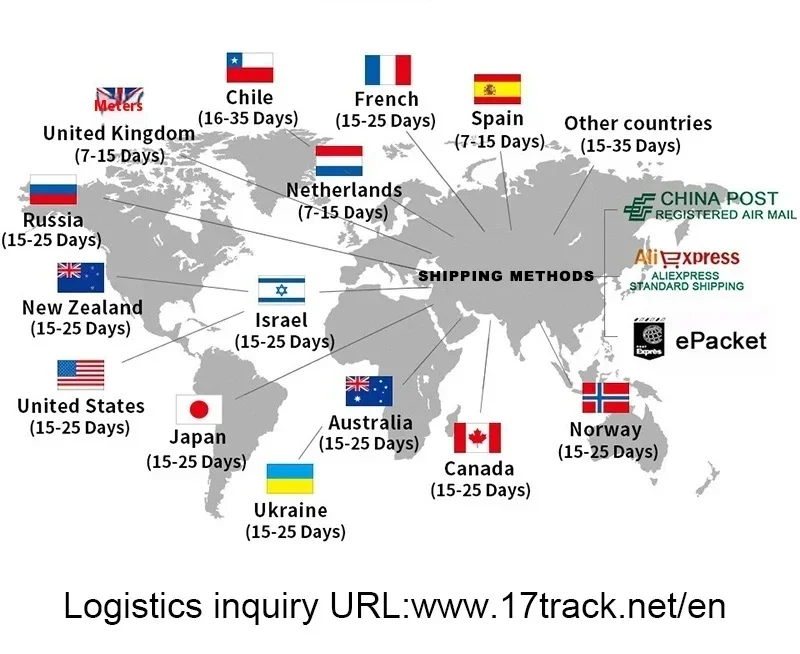 2. Enviaremos el paquete a través de China Post u otro correo nacional.Por lo general, el tiempo de envío es de 15 a 30 días hábiles según su país.Si no puede recibir su artículo dentro de los 30 días, no dude en contactarnos para obtener ayuda.