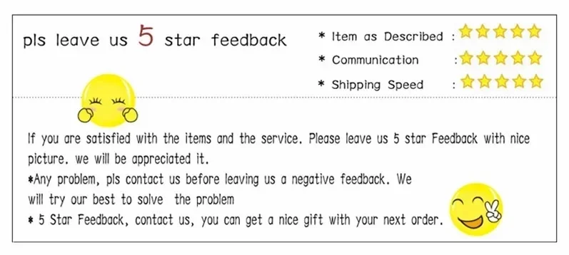 Si no está satisfecho con los artículos, no dude en contactarnos para obtener una solución en lugar de dejar un comentario neutral o negativo, lo que significa que no necesita nuestro servicio postventa. Haremos todo lo posible para resolver el problema.