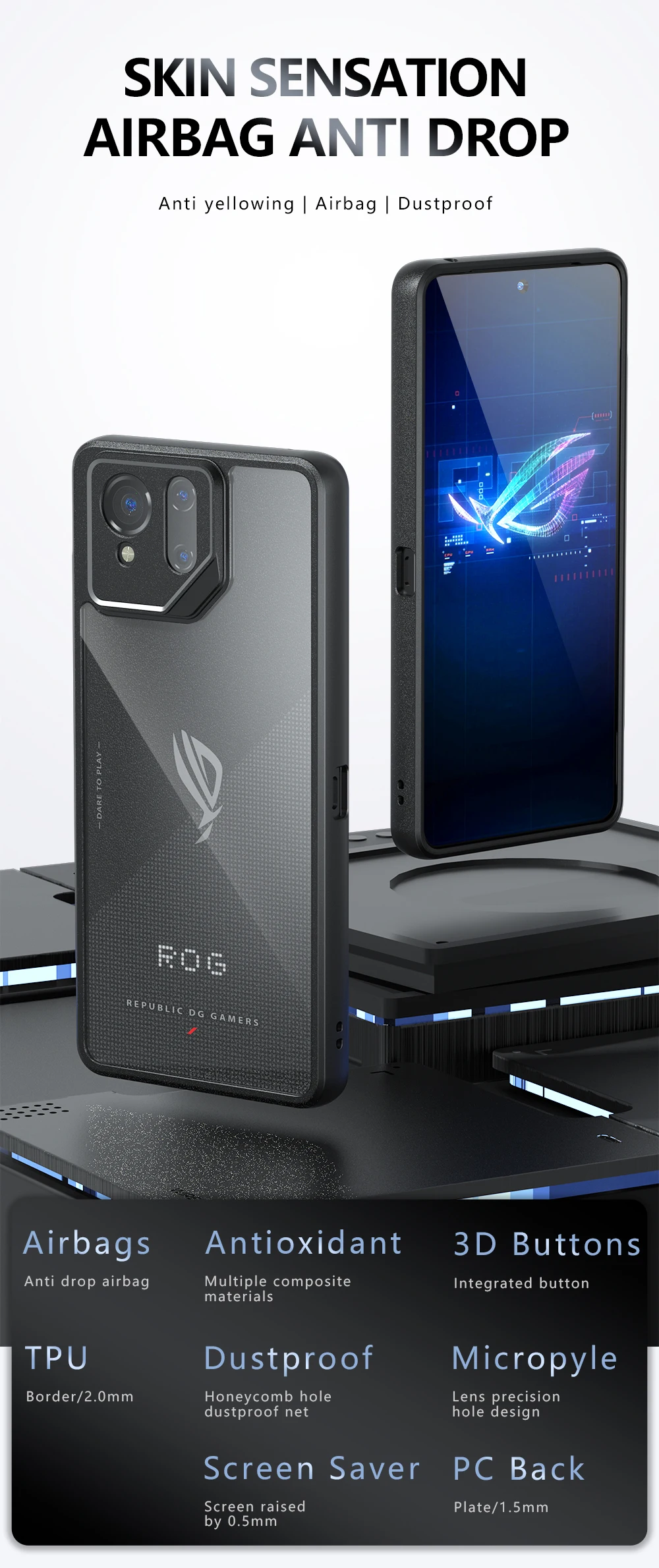 Para Asus ROG Phone 9 Pro 5G funda trasera Phnoe a prueba de golpes Airbag protección anticaída antihuellas mate Funda Coque Cases