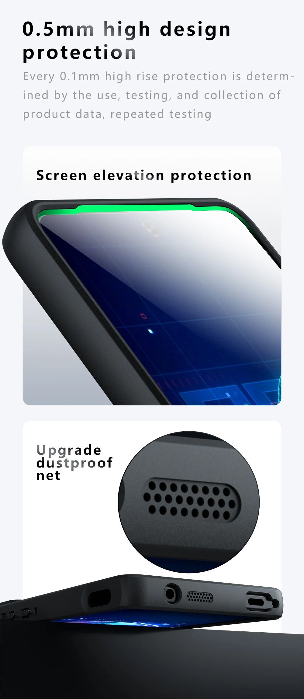 Protección trasera A prueba de golpes + Antideslizante + Antihuellas.