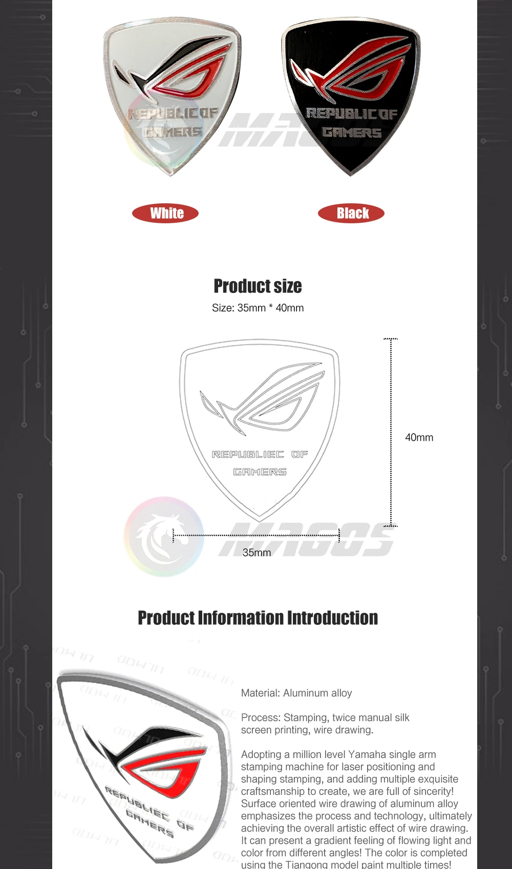 Comprar ASUS ROG Player Etiqueta engomada del logotipo del metal Etiqueta de la creencia Etiqueta del teléfono Etiqueta de la caja del ordenador Negro/Blanco
