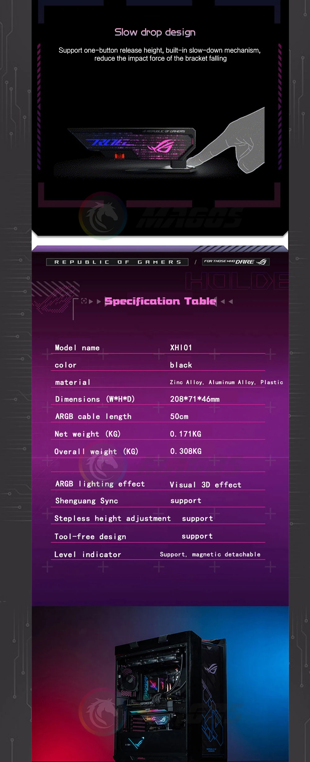 Comprar ASUS-soporte para tarjeta gráfica ROG Herculx GPU, accesorio para RTX 3060-3090 ti Series AURA SYNC efecto 3D, soporte VGA Horizontal