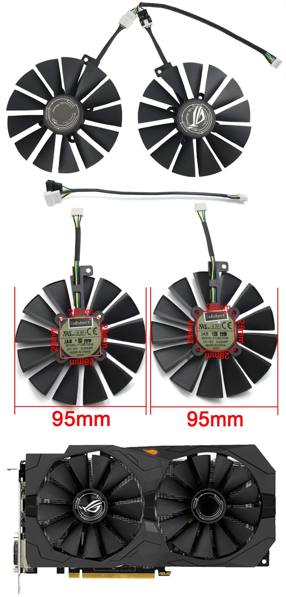 Comprar Para ASUS STRIX RX 470 580 570 GTX 1050Ti 1070Ti 1080Ti T 129215 Ventilador enfriador de tarjetas gráficas SM 95MM