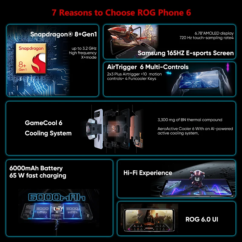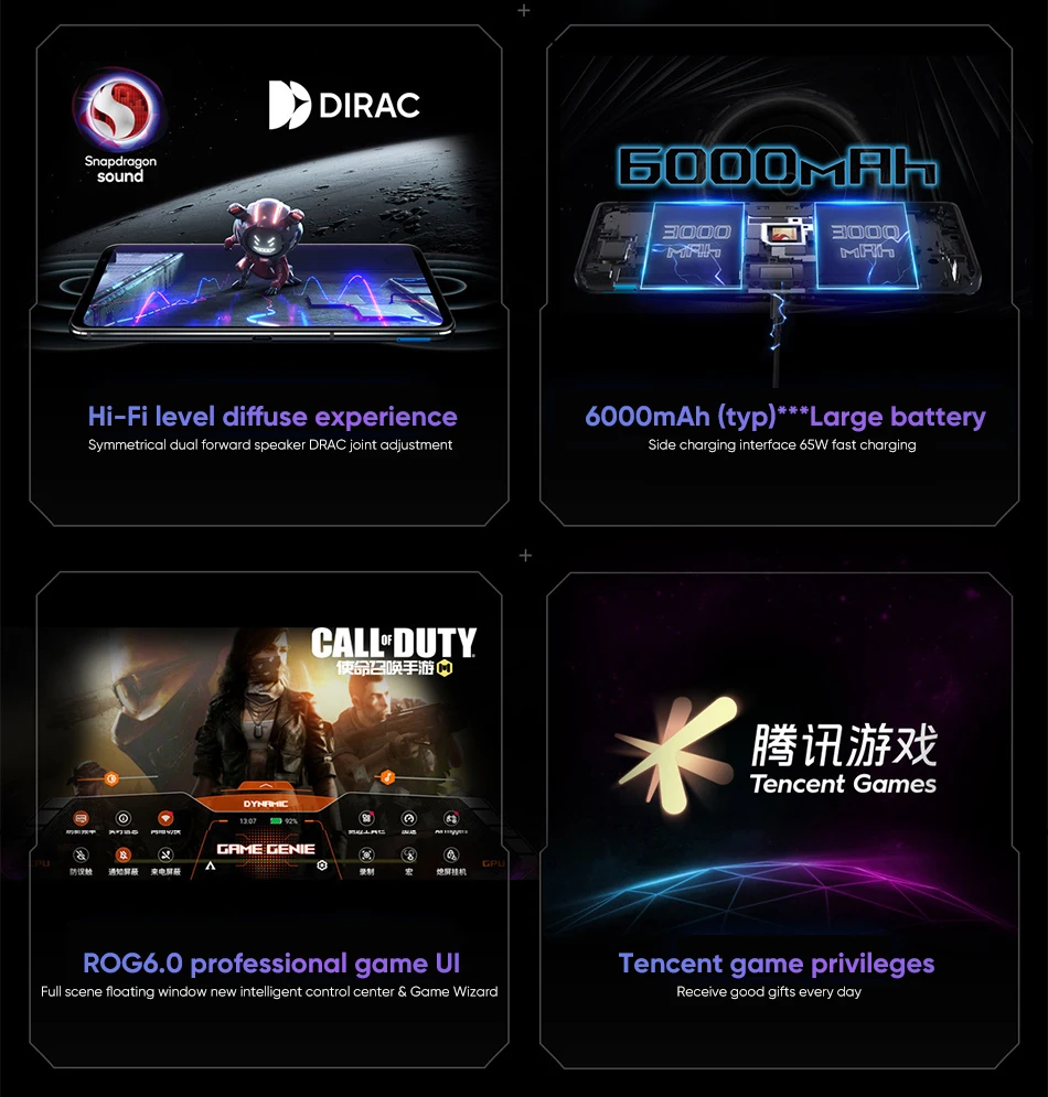 Experiencia difusa, batería de 6000mAh(typ)* Lagre, interfaz de usuario de juego profesional ROG 6,0 y