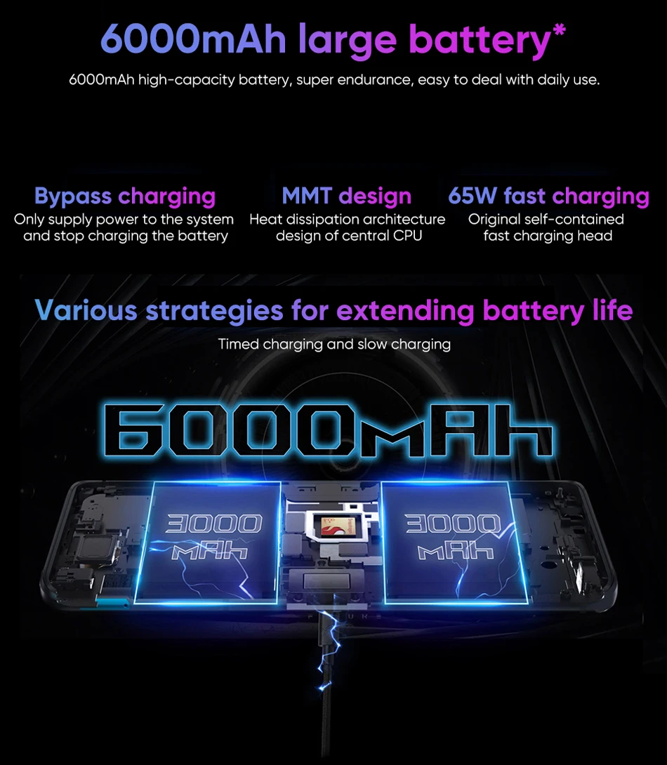 Batería6000mAh (typ),Soporta carga rápida de 65W, cargador en caja de 65W