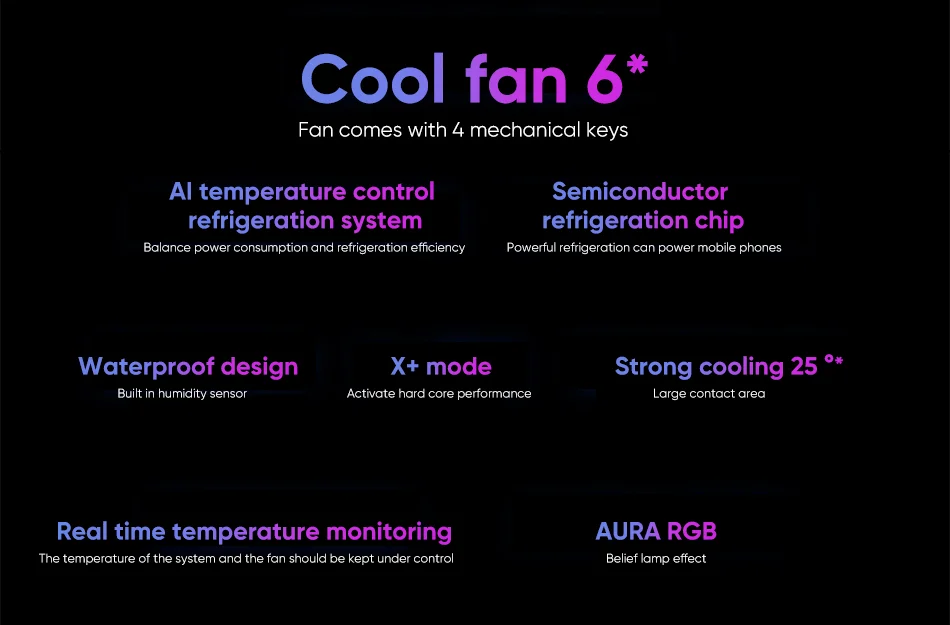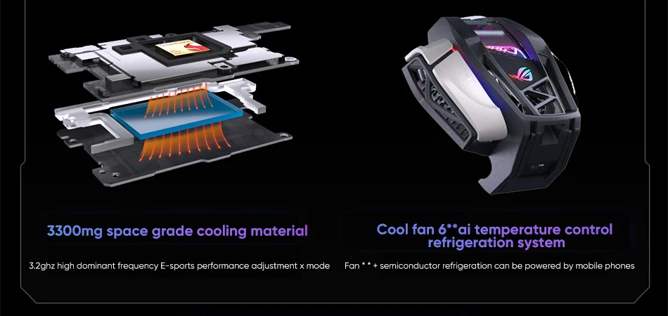 Material de refrigeración de grado espacial de 3300mg; Ventilador frío 6 ** control de temperatura ai