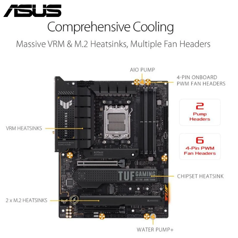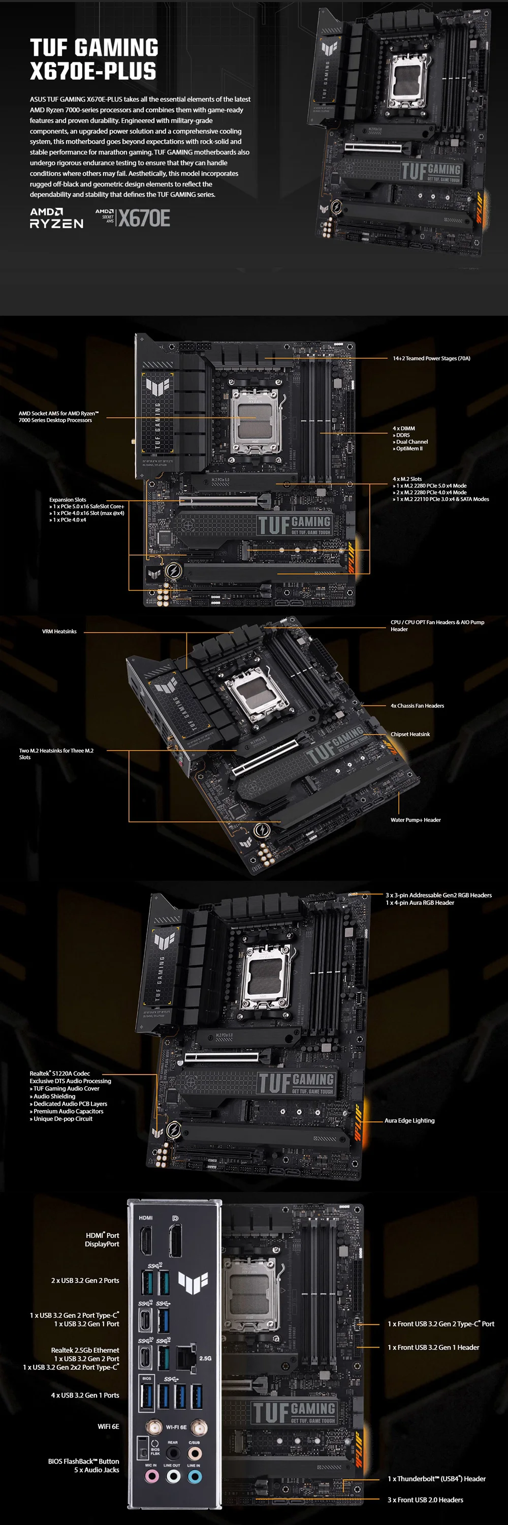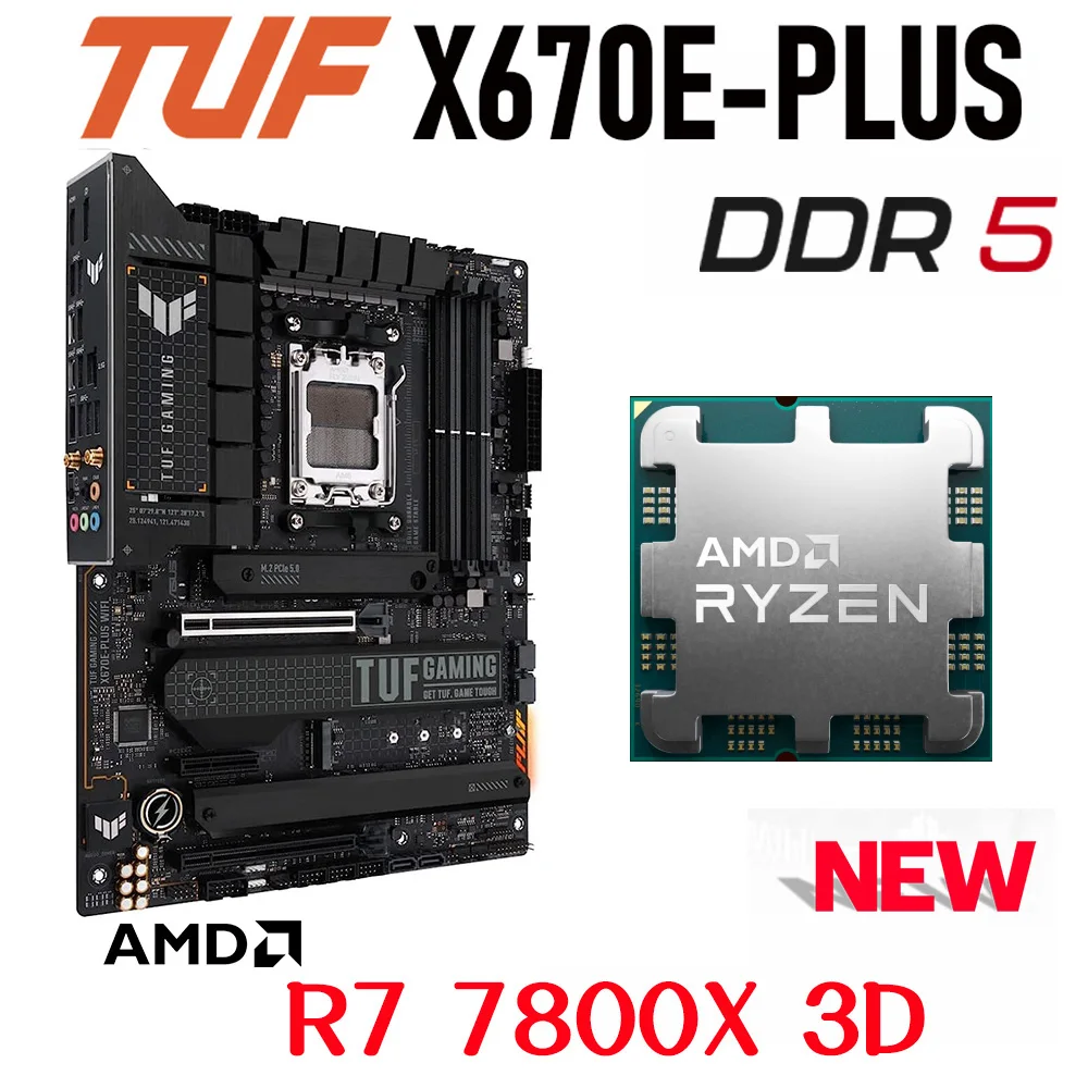 Comprar ASUS-TUF GAMING X670E-PLUS Socket AM5 DDR5, 128GB, PCI-E 5,0 M.2 SATA, compatible con doble canal, AMD RYZEN 7 7800X, Combo de procesador 3D