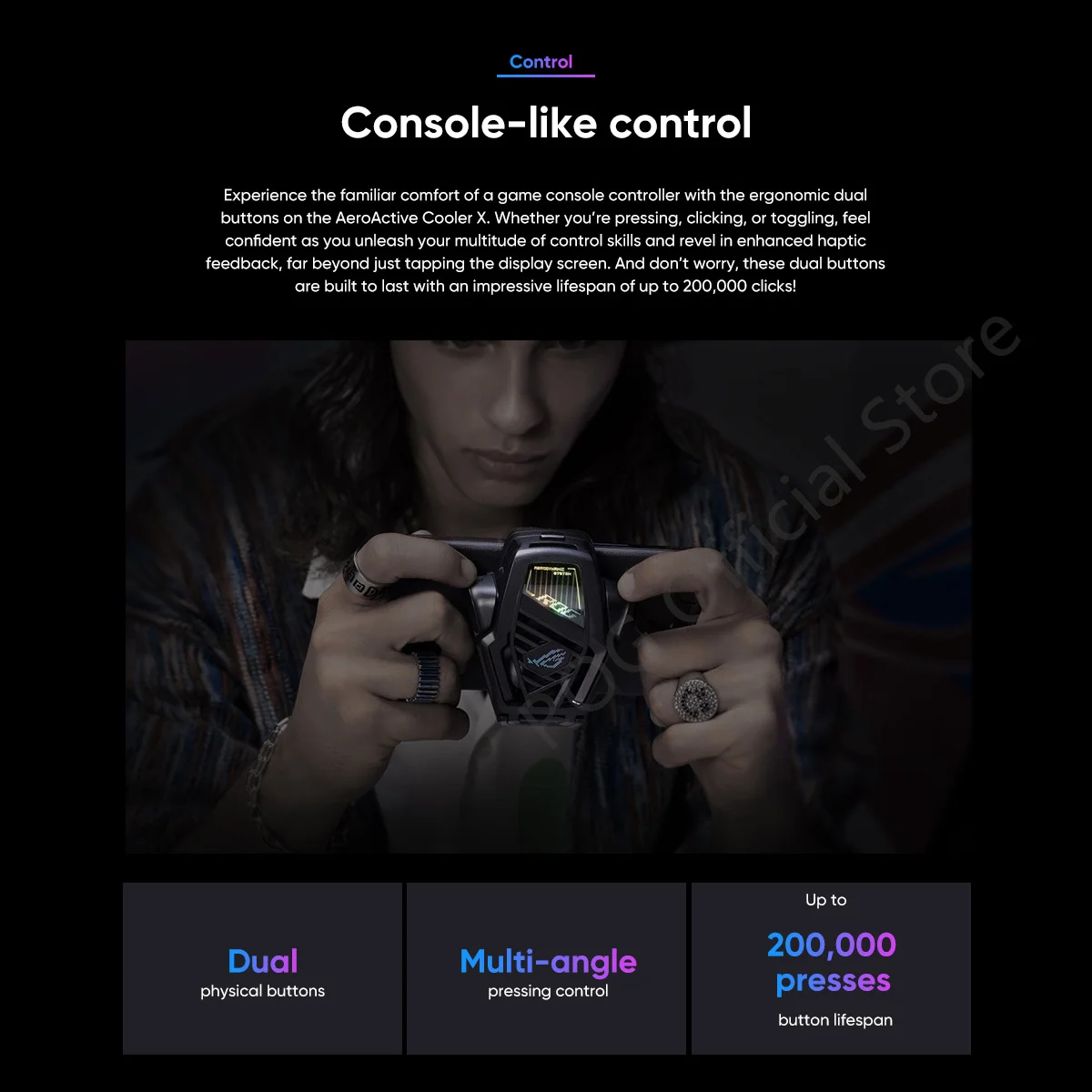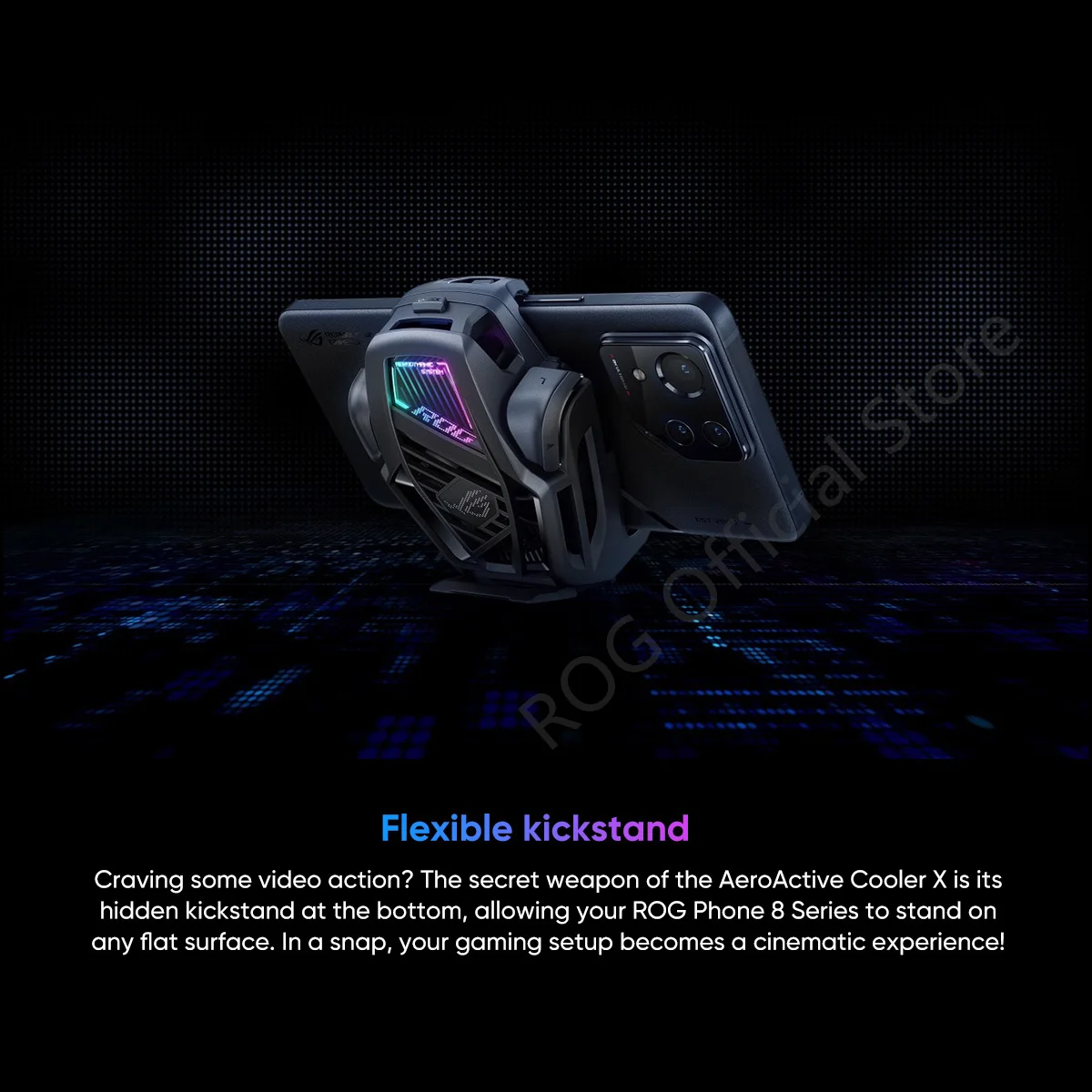 Hay tres modos de enfriamiento activo: el modo de enfriamiento utiliza solo el ventilador, el modo Frosty agrega el chip termoeléctrico alimentado-de forma única solo por el teléfono, Y el modo congelado es el mismo modo asFrosty pero usa la potencia externa 1 a través del puerto de carga lateral para un enfriamiento aún más potente de su teléfono ROG. El enfriador aeroactivo 6 se centra en la refrigeración Flujo de aire directamente a los puntos calientes de la cubierta trasera del teléfono ROG 6. Así es que puede reducir la temperatura de la superficie cerca de la CPU hasta en unos impresionantes 25 ℃ 2.